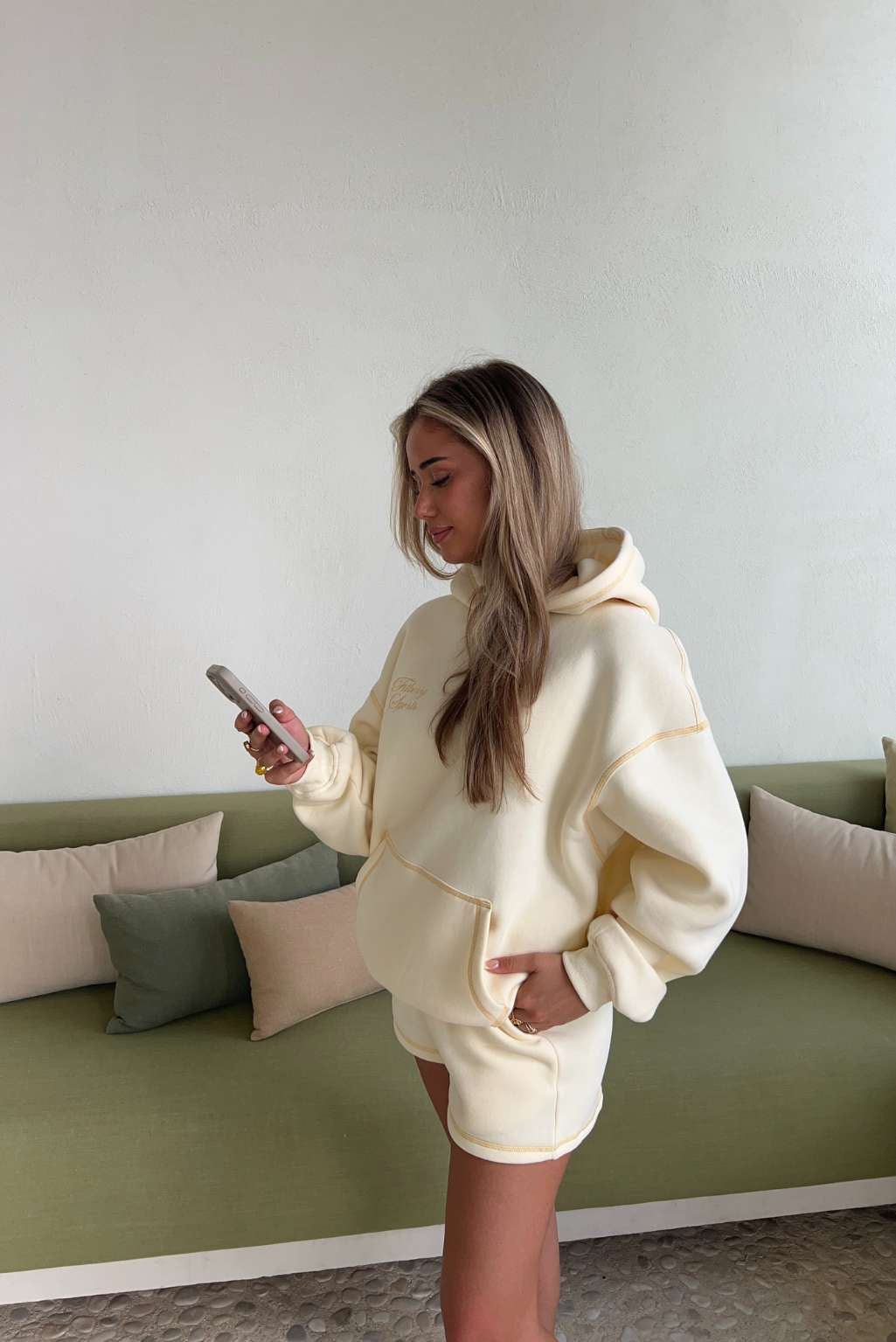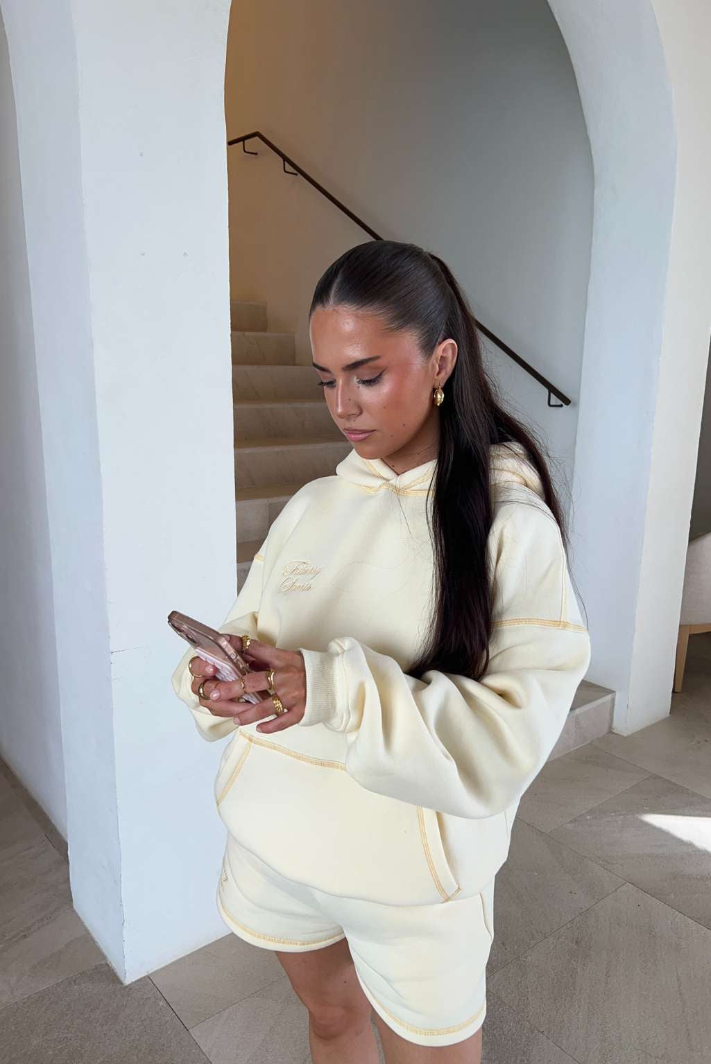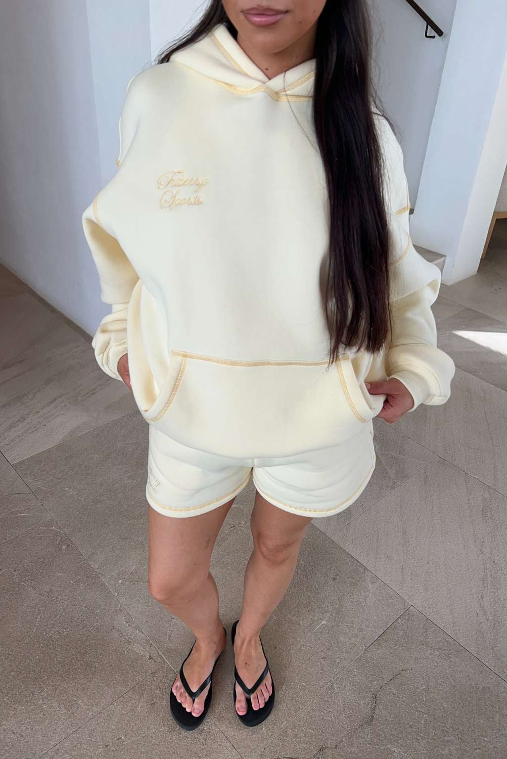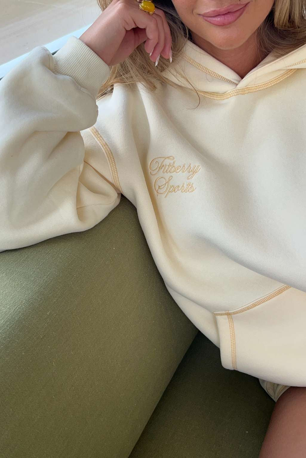 FITBERRY® CONTOUR OVERSIZED HOODIE. An oversized hoodie crafted from premium high-quality cotton fabric. Designed with a tonal seam detailing that adds structure and contrast to the silhouette. The hoodie has a soft fleece interior, dropped shoulders, a cozy hood, front pocket and ribbed details on the sleeves and waist. Finished with an embroidered Fitberry contour logo to front.