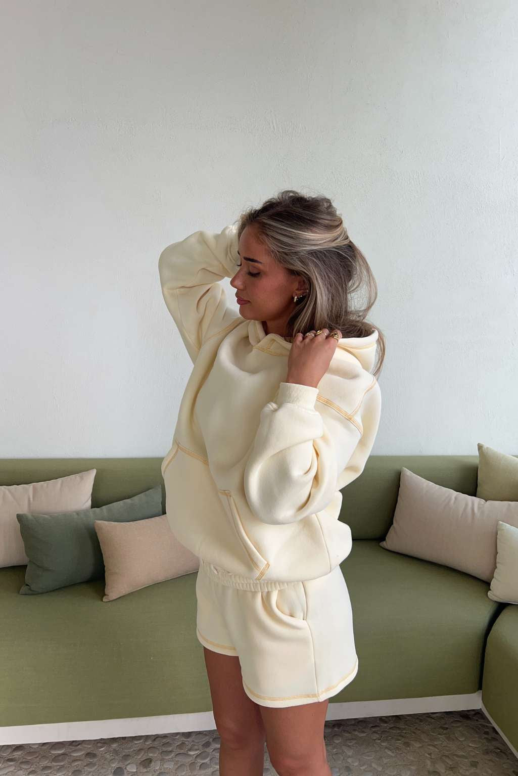 Model 1: Hanna is 160cm and wears a size S in hoodie and size XS in joggers / shorts.
