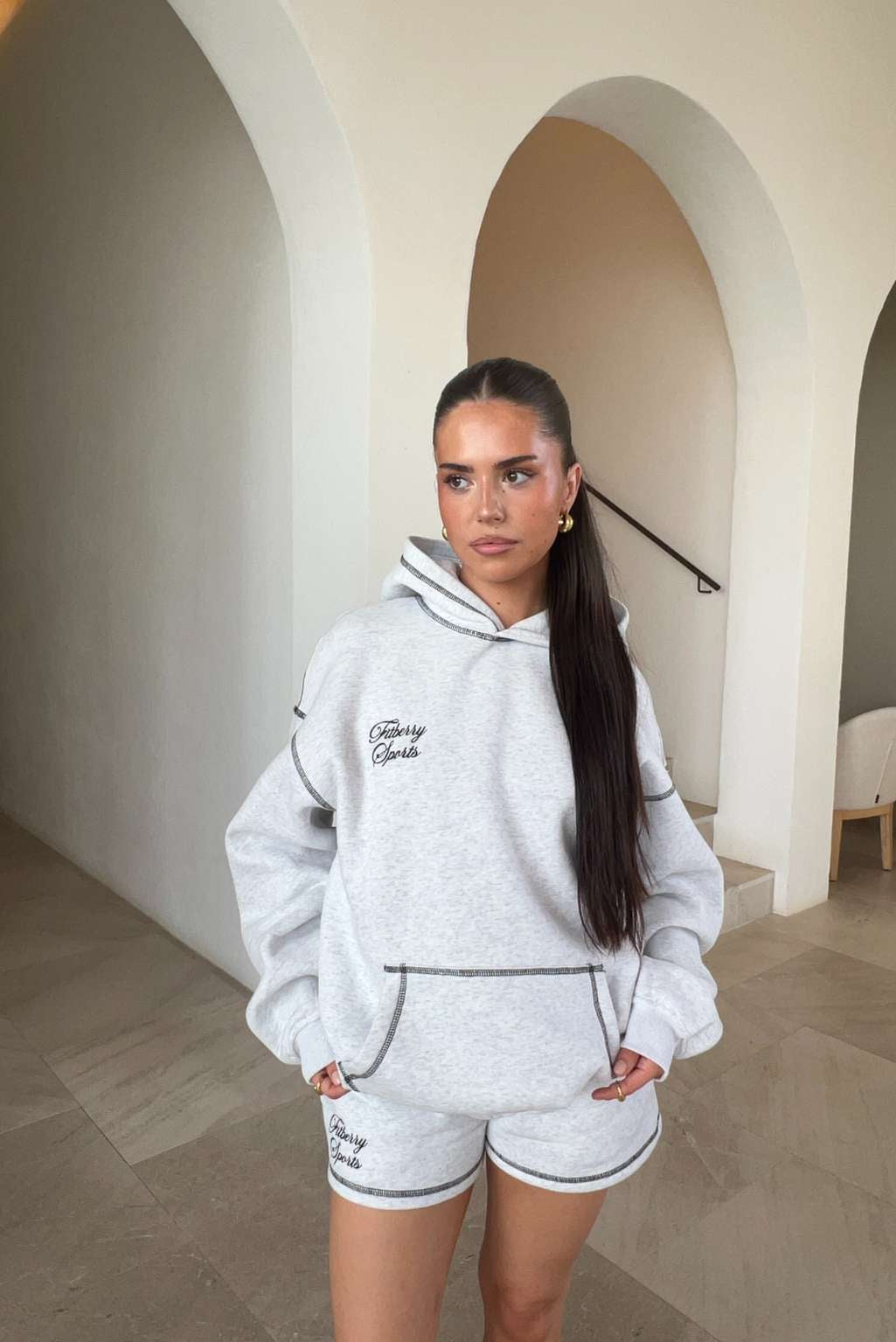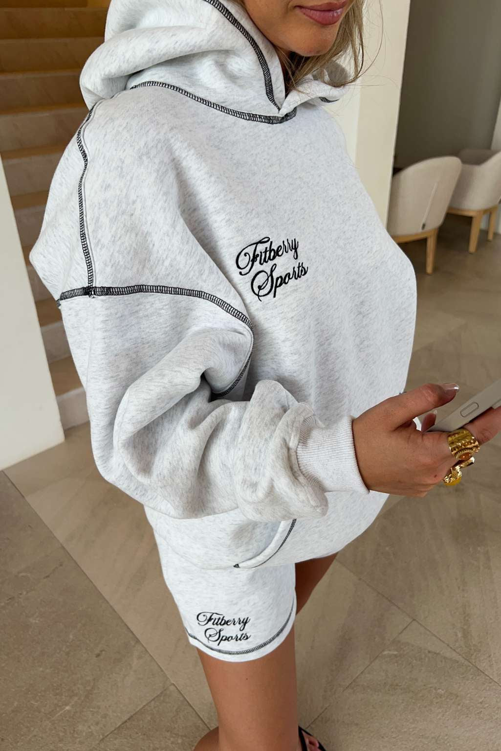 FITBERRY® CONTOUR OVERSIZED HOODIE. An oversized hoodie crafted from premium high-quality cotton fabric. Designed with a tonal seam detailing that adds structure and contrast to the silhouette. The hoodie has a soft fleece interior, dropped shoulders, a cozy hood, front pocket and ribbed details on the sleeves and waist. Finished with an embroidered Fitberry contour logo to front.