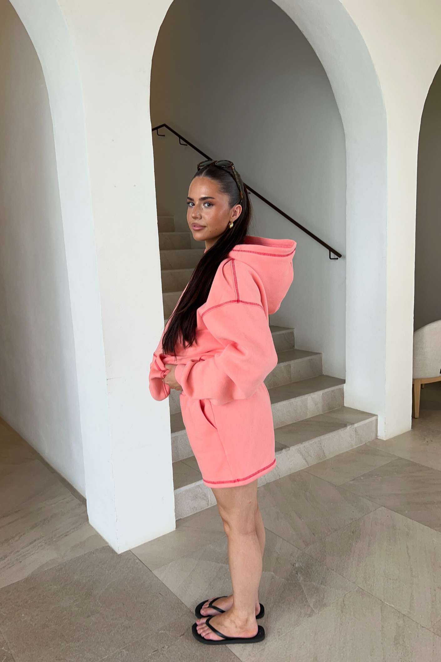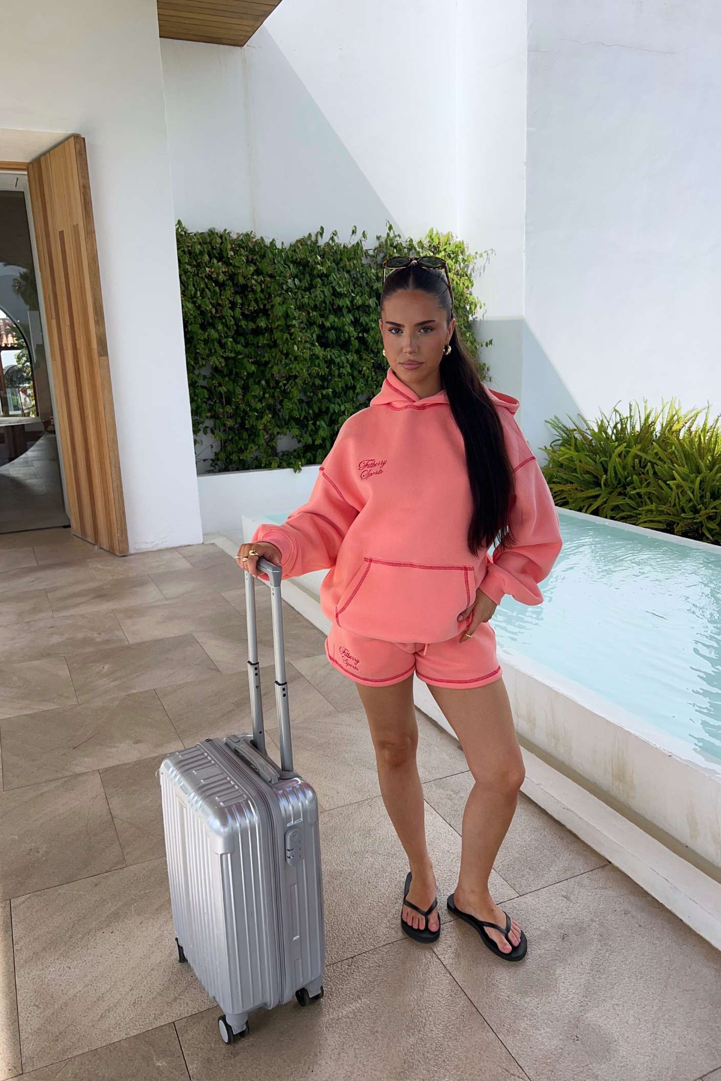 Model 2: Hanna is 160cm and wears a size S in hoodie and size XS in joggers / shorts.
