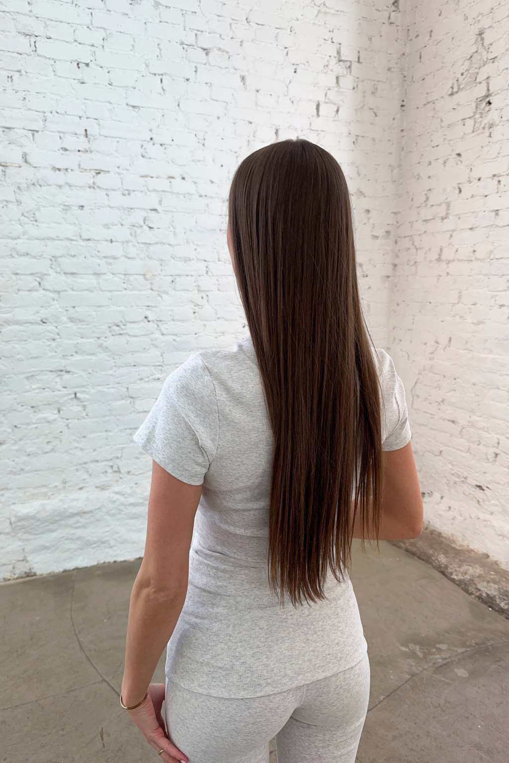 Made with a cotton-elastane blend. The softness of cotton is combined with the flexibility of elastane to create a fabric that moves with you while keeping its shape. It is light, breathable and supportive, making it suitable for both active flows and gentle stretches.