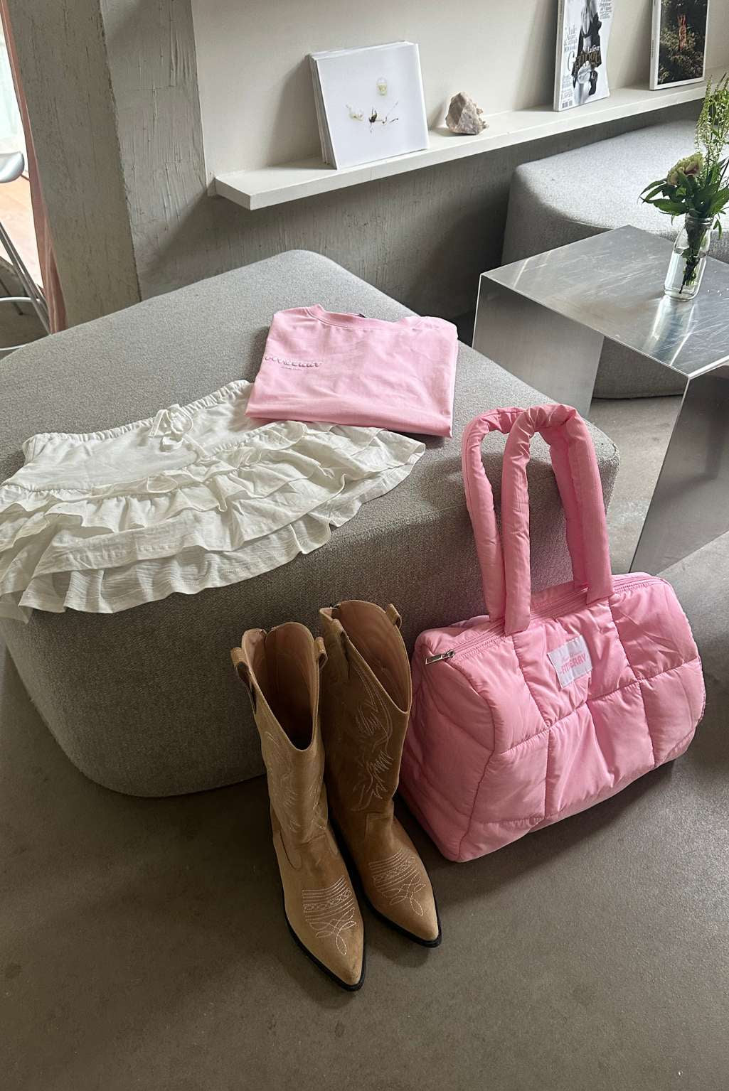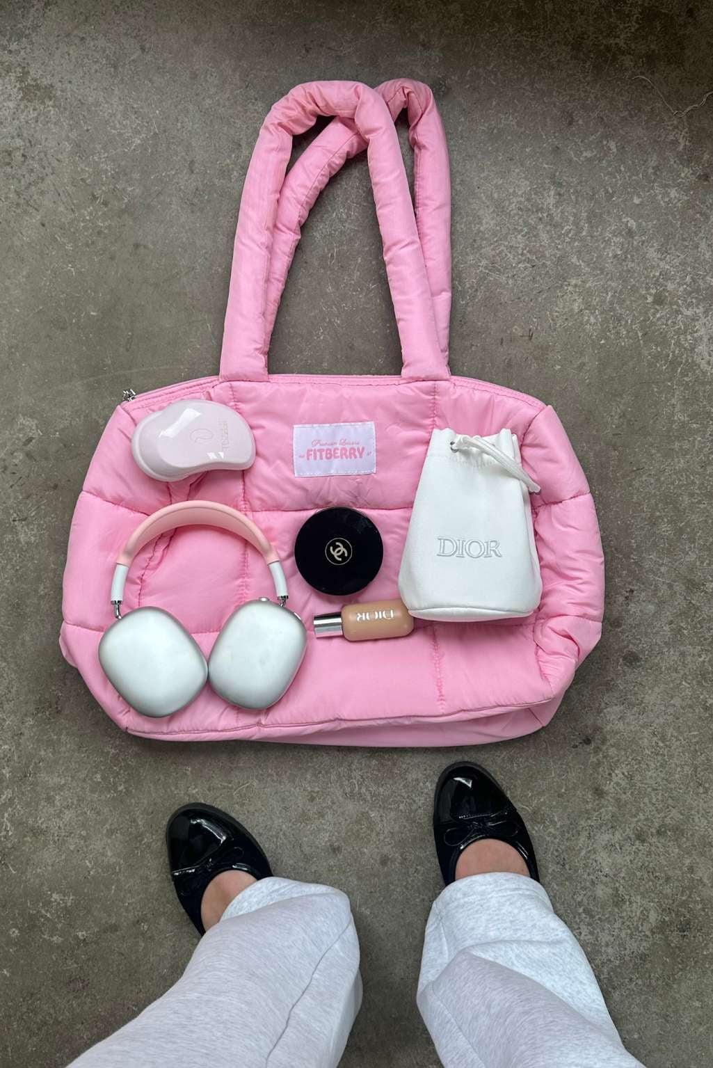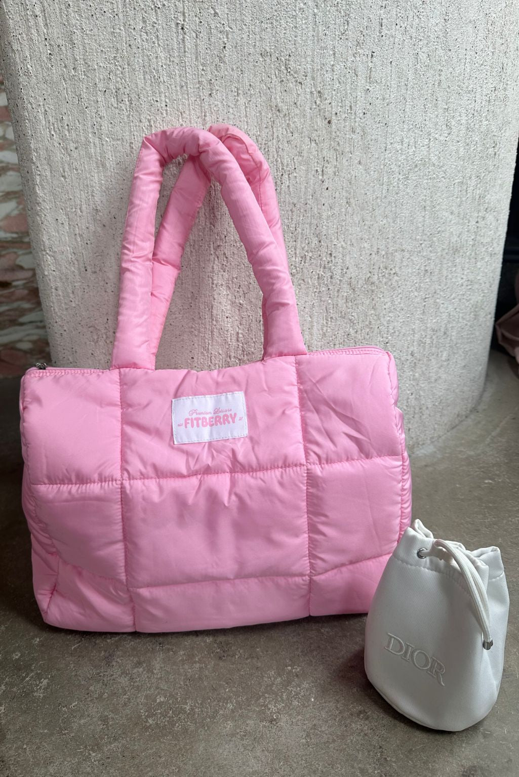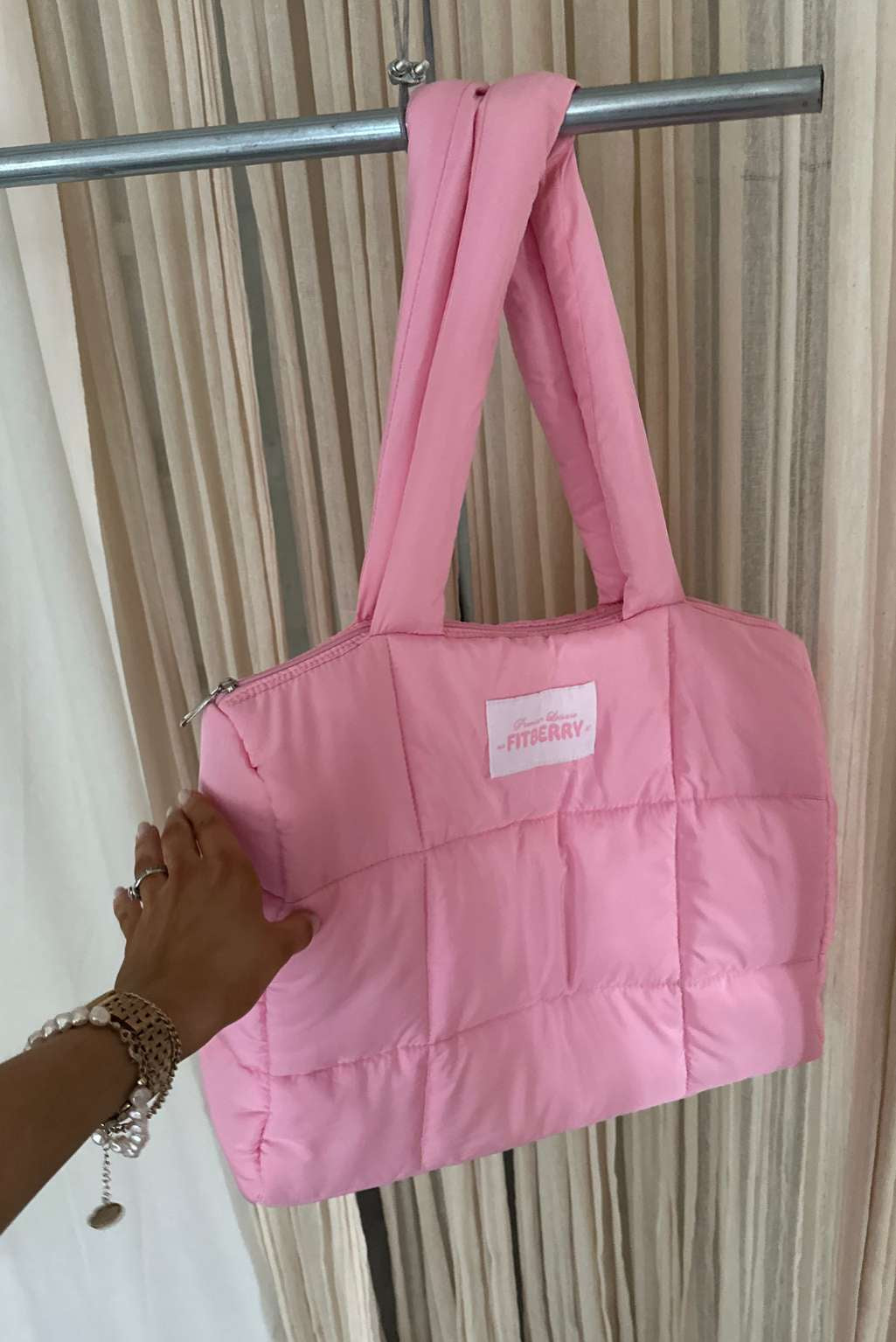 FITBERRY® PUFFER WEEKEND BAG. The perfect weekend bag. Featuring Fitberry woven logo, shoulder straps, tonal stitching, zipper closure and a small inner pocket to fit your keys, phone and other accessories.