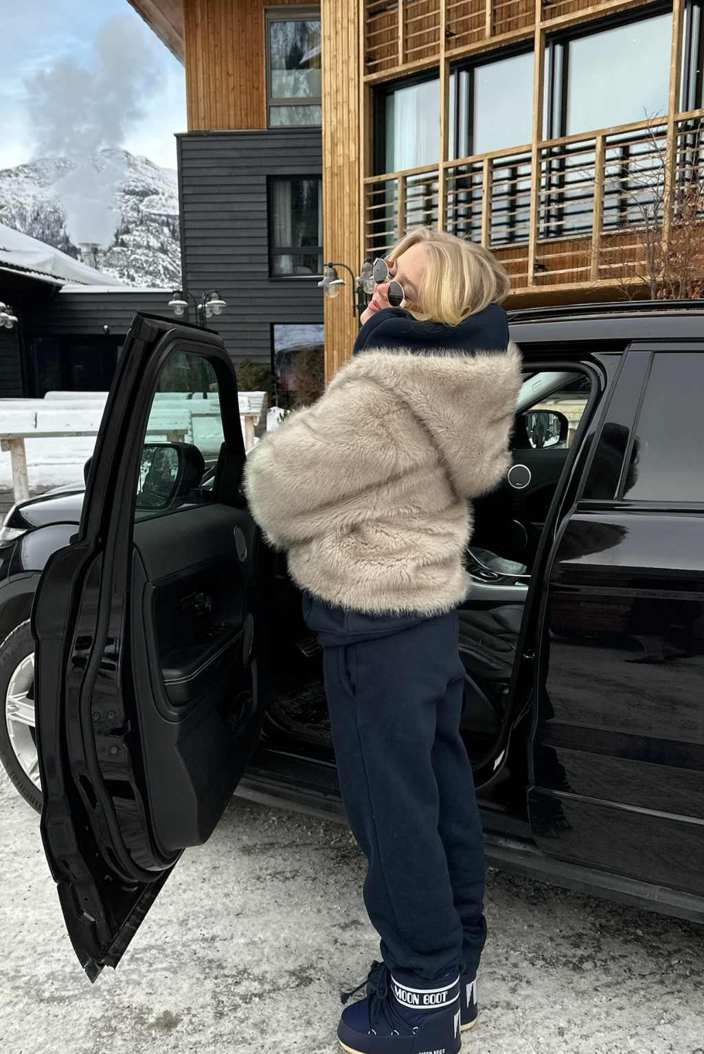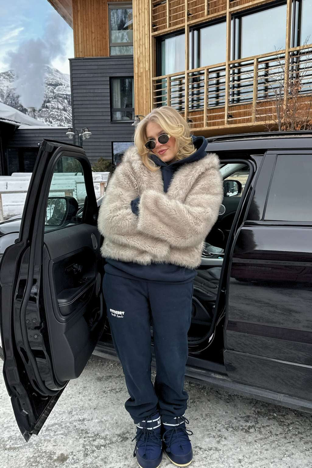 Julie Fiala is 185cm and wears a size L in both hoodie and joggers.