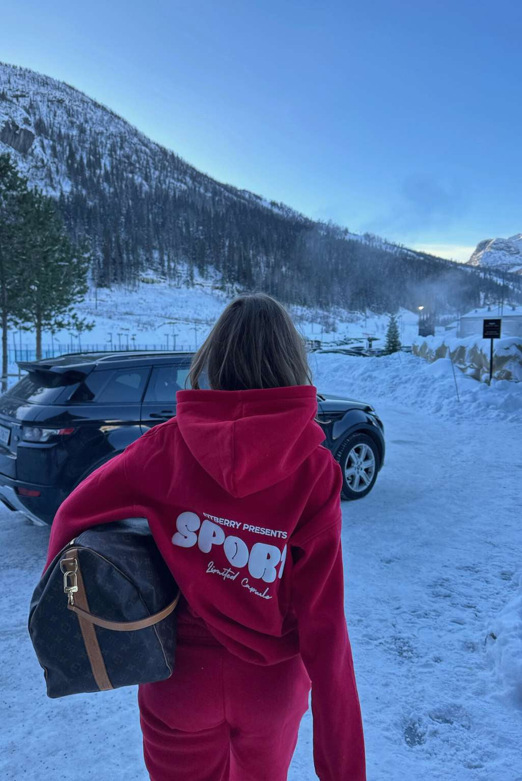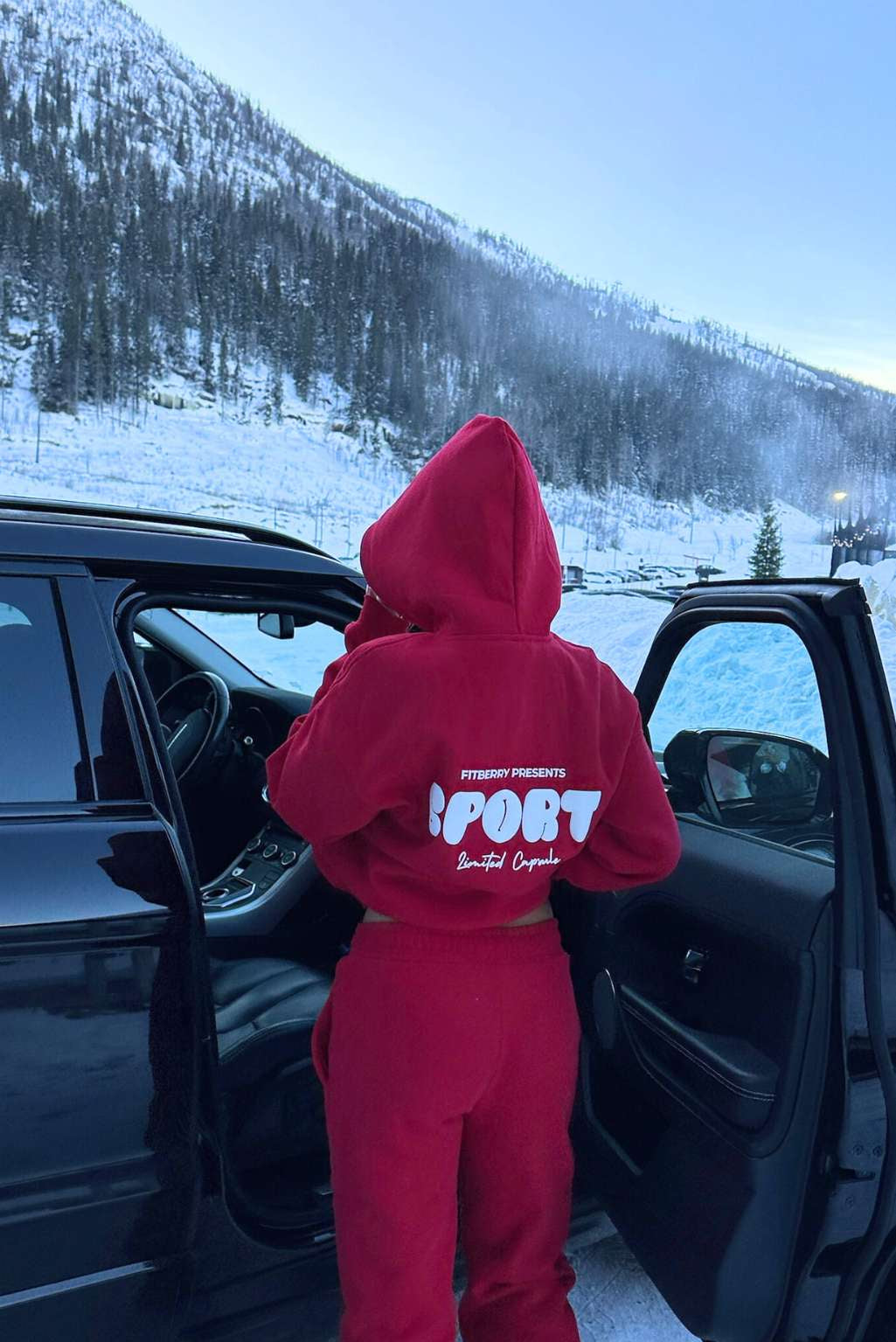 FITBERRY® SPORT OVERSIZED HOODIE. An oversized hoodie crafted from premium high-quality cotton fabric. The hoodie has a soft fleece interior, dropped shoulders, a cozy hood and ribbed details on the sleeves and waist. Featuring FITBERRY® SPORT print to front and back.