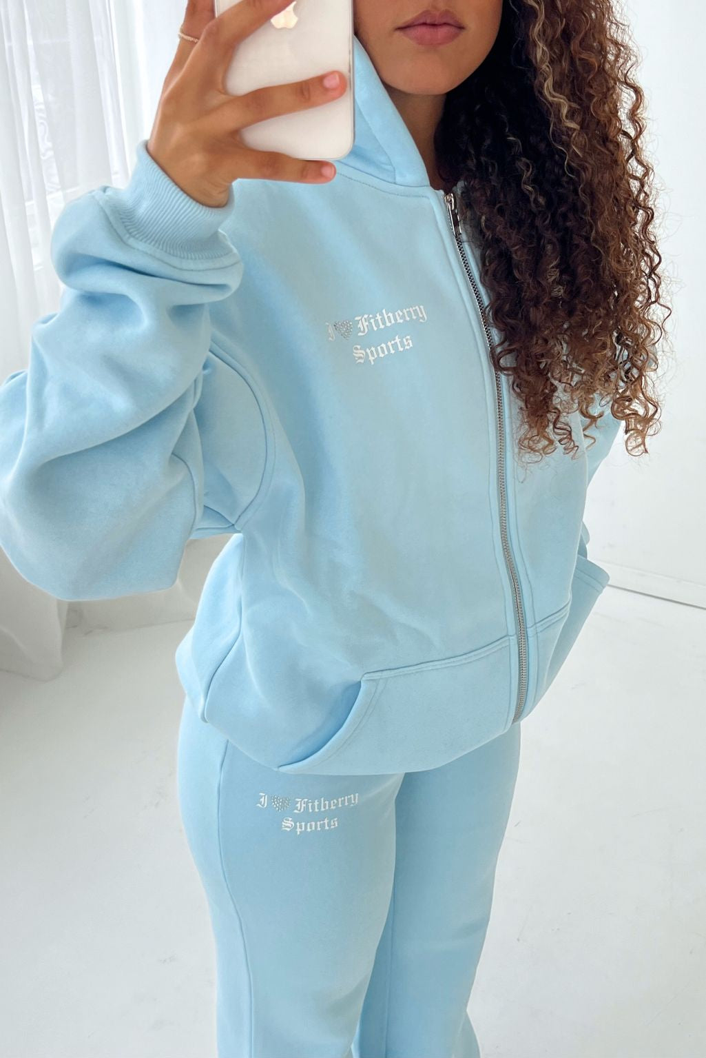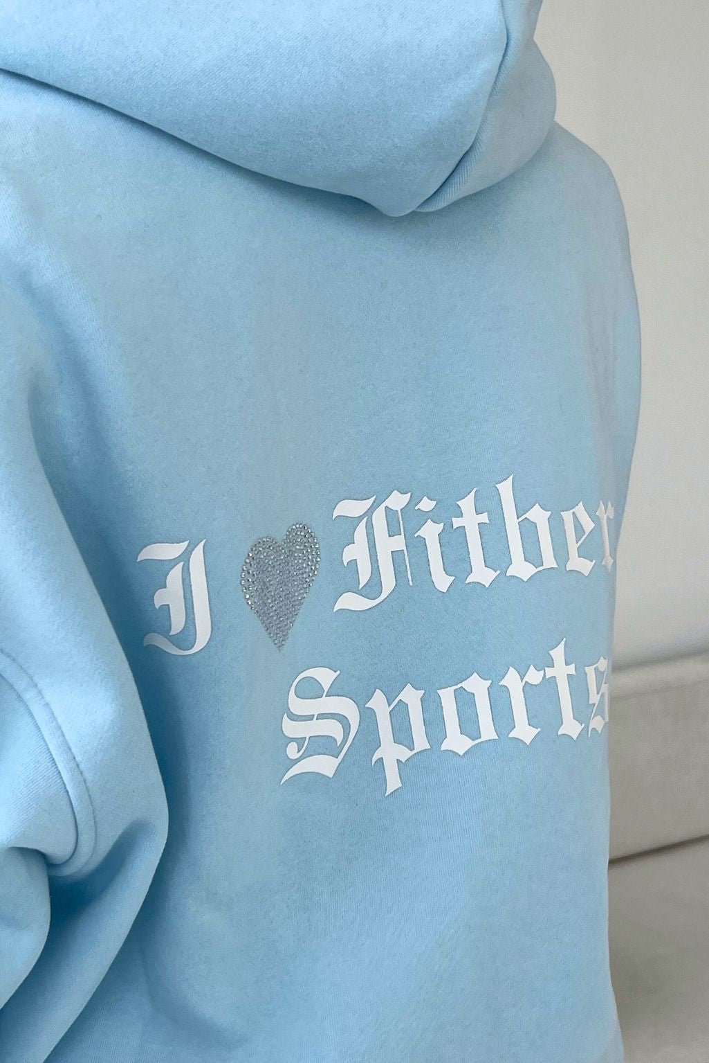 I ♥ FITBERRY® OVERSIZED ZIP HOODIE. An oversized hoodie crafted from premium high-quality cotton fabric. The hoodie has a zipper in front, soft fleece interior, dropped shoulders, side pockets, a cozy hood and ribbed details on the sleeves and waist. Featuring I ♥ FITBERRY print to front and back with handmade rhinestone heart.