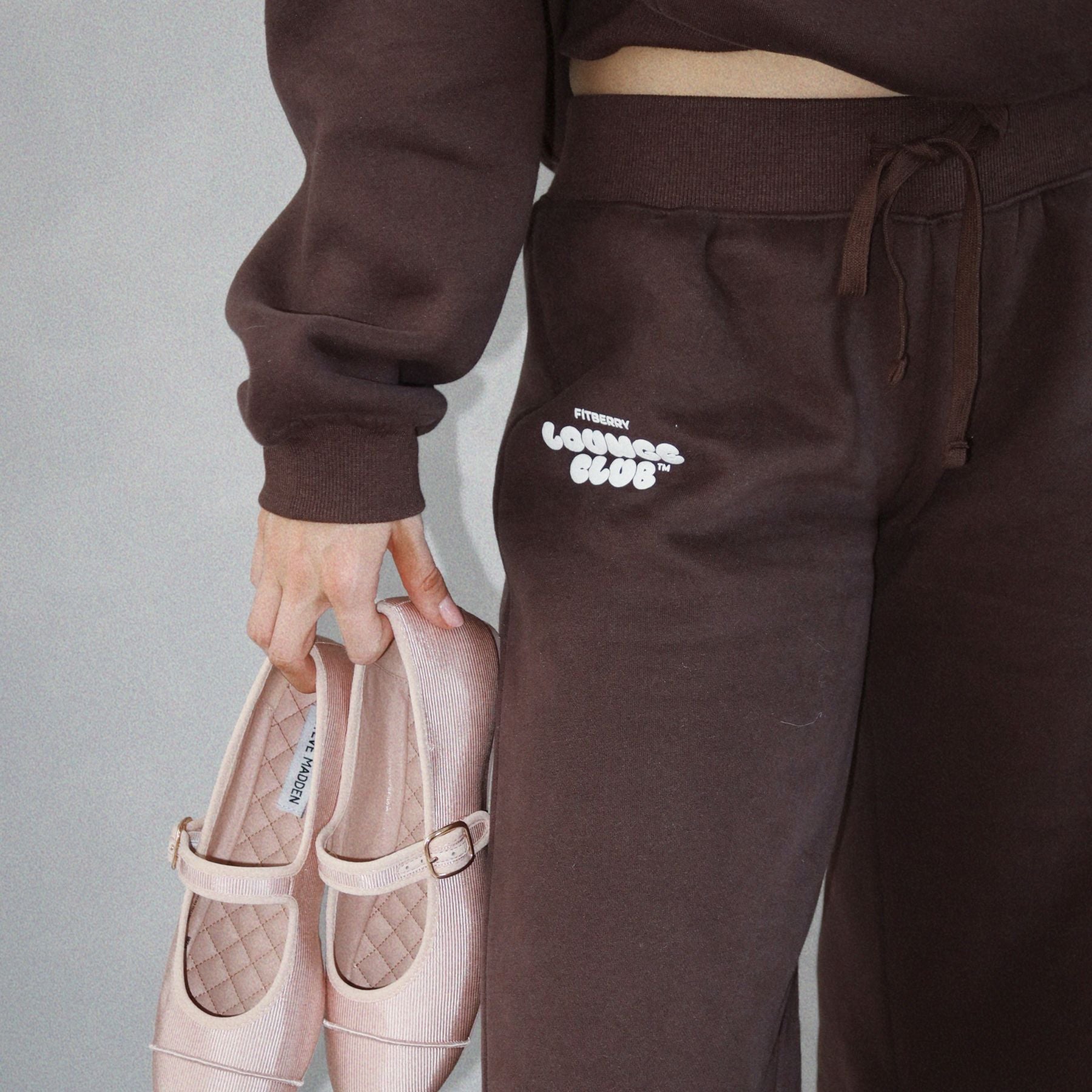 FITBERRY® LOUNGE CLUB FLARED LEG JOGGERS. Mid-waist joggers with a wide flared leg and the perfect fit. Crafted from a premium high-quality cotton fabric. The flared joggers have soft fleece interior, adjustable drawstring waist and our signature Fitberry Lounge Club print to front.