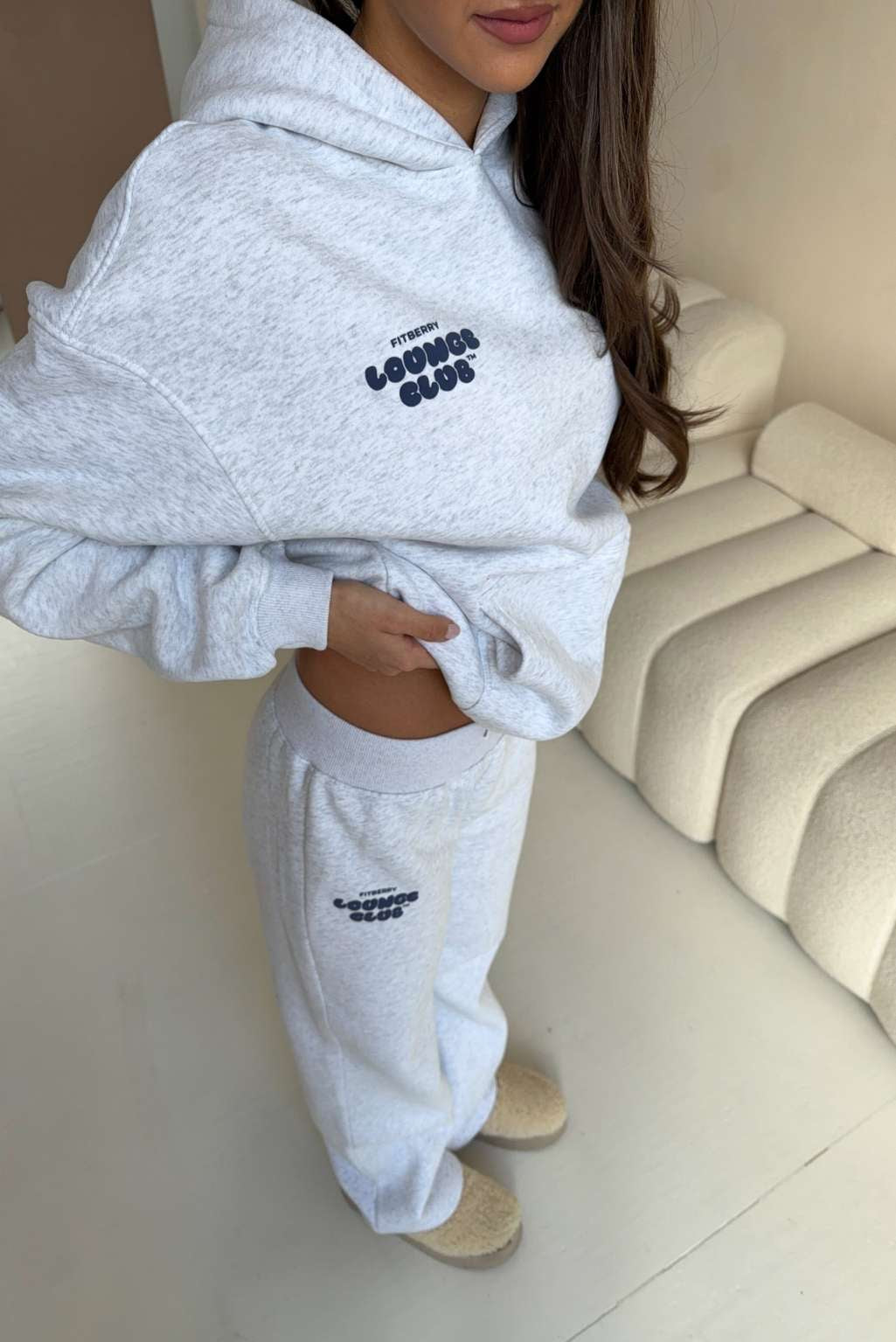 FITBERRY® LOUNGE CLUB FLARED LEG JOGGERS. Mid-waist joggers with a wide flared leg and the perfect fit. Crafted from a premium high-quality cotton fabric. The flared joggers have soft fleece interior, adjustable drawstring waist and our signature Fitberry Lounge Club print to front.