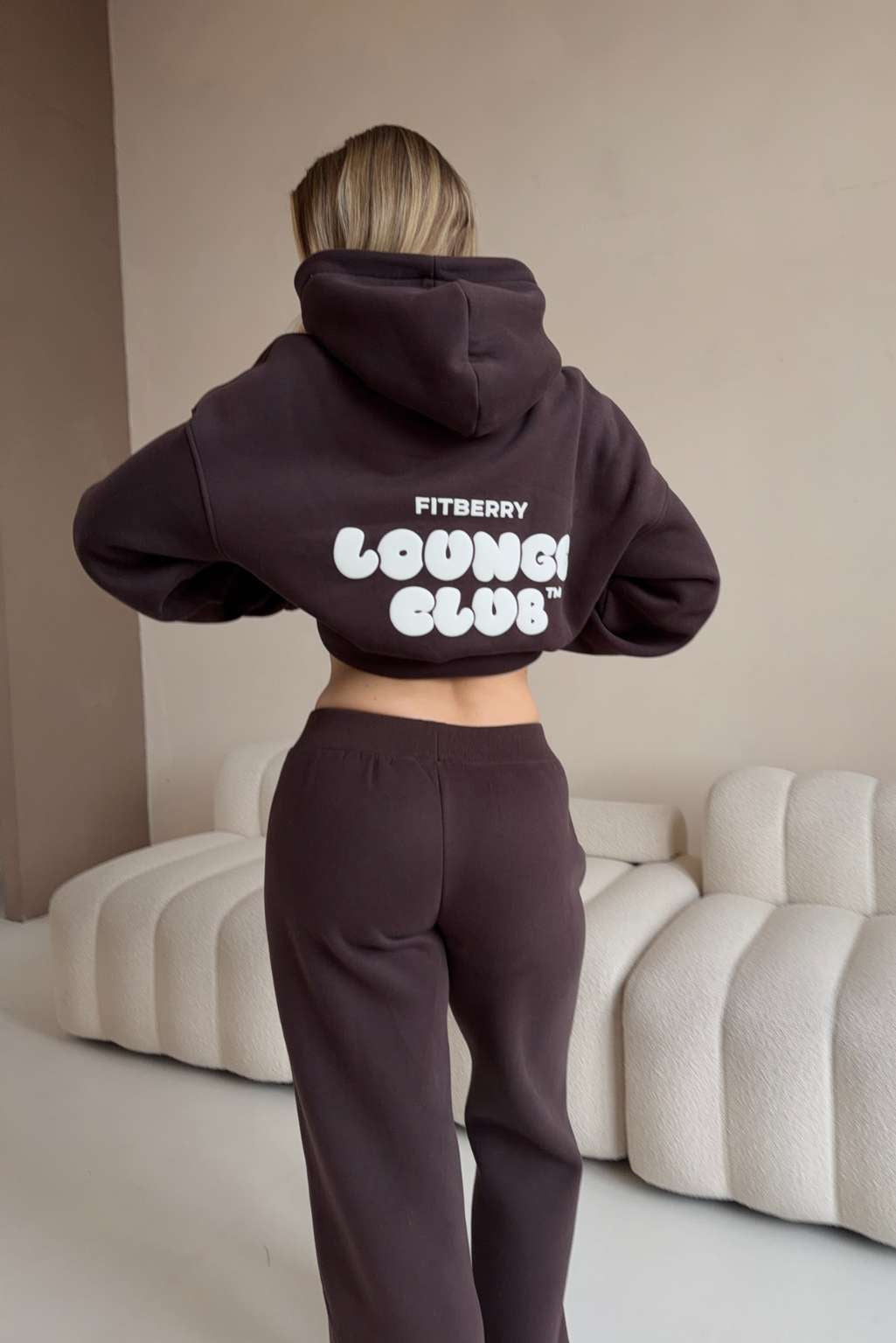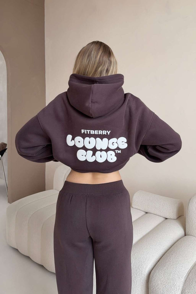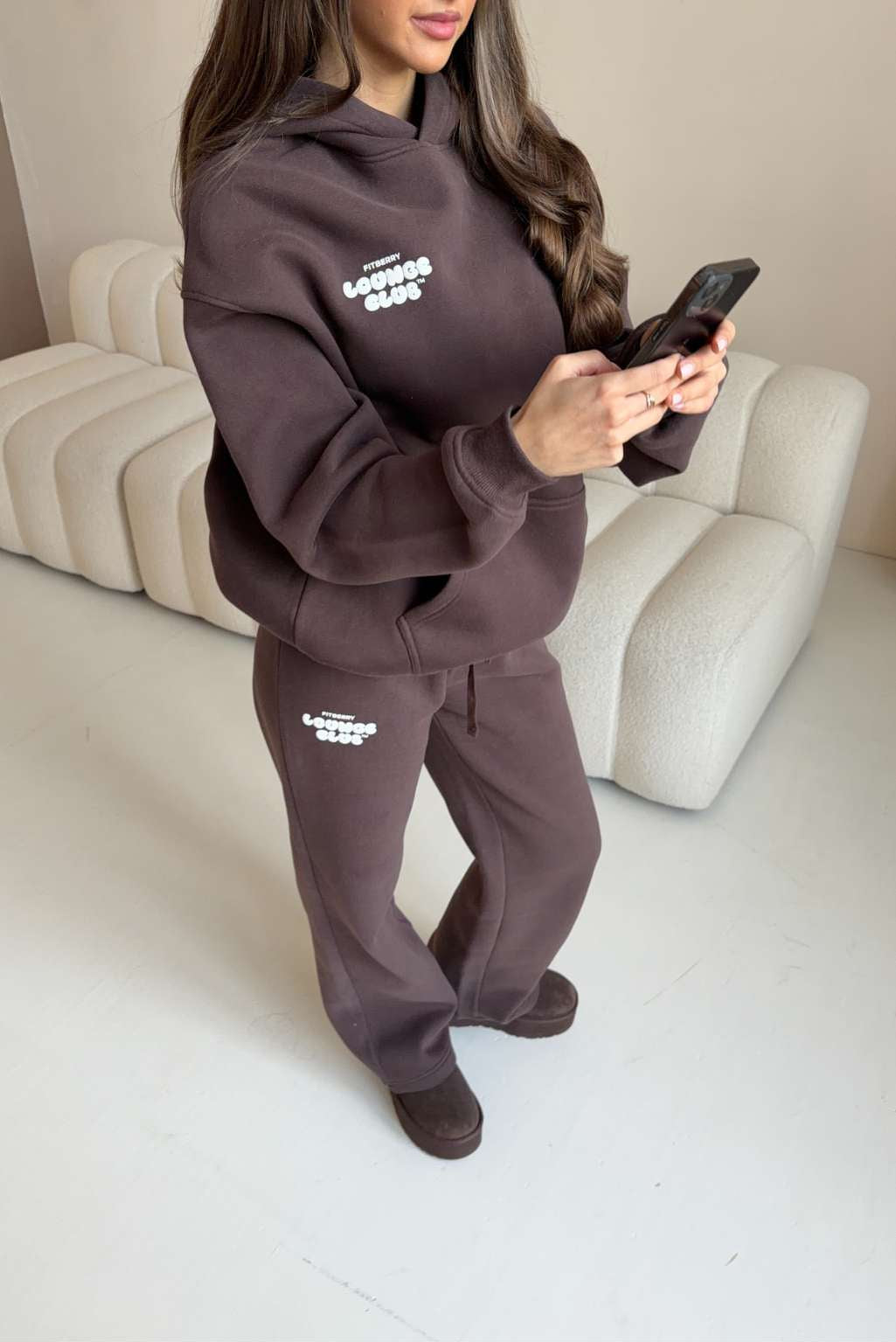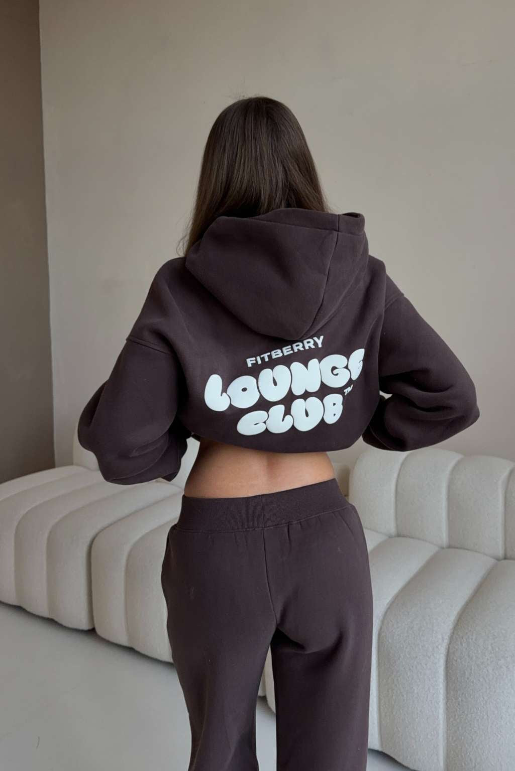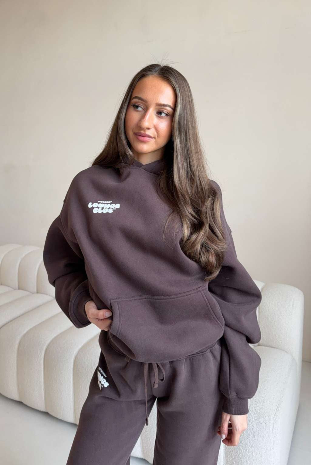 FITBERRY® LOUNGE CLUB OVERSIZED HOODIE. An oversized hoodie crafted from premium high-quality cotton fabric. The hoodie has a soft fleece interior, dropped shoulders, a cozy hood, front pocket and ribbed details on the sleeves and waist. Featuring our signature Fitberry Lounge Club print to front and back.