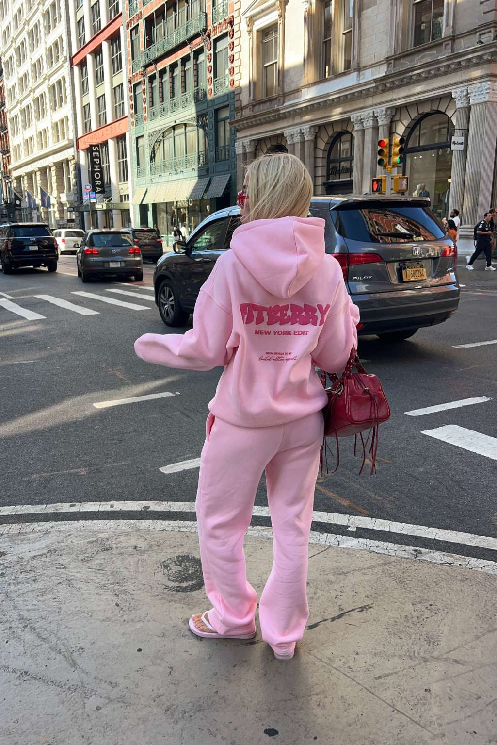 FITBERRY® NEW YORK EDIT STRAIGHT LEG JOGGERS. Mid-waist joggers with straight leg and the perfect fit. Crafted from a premium high-quality cotton fabric. The straight joggers have soft fleece interior, deep pockets and a hidden adjustable drawstring waist. Featuring our Fitberry New York edit print to front.
