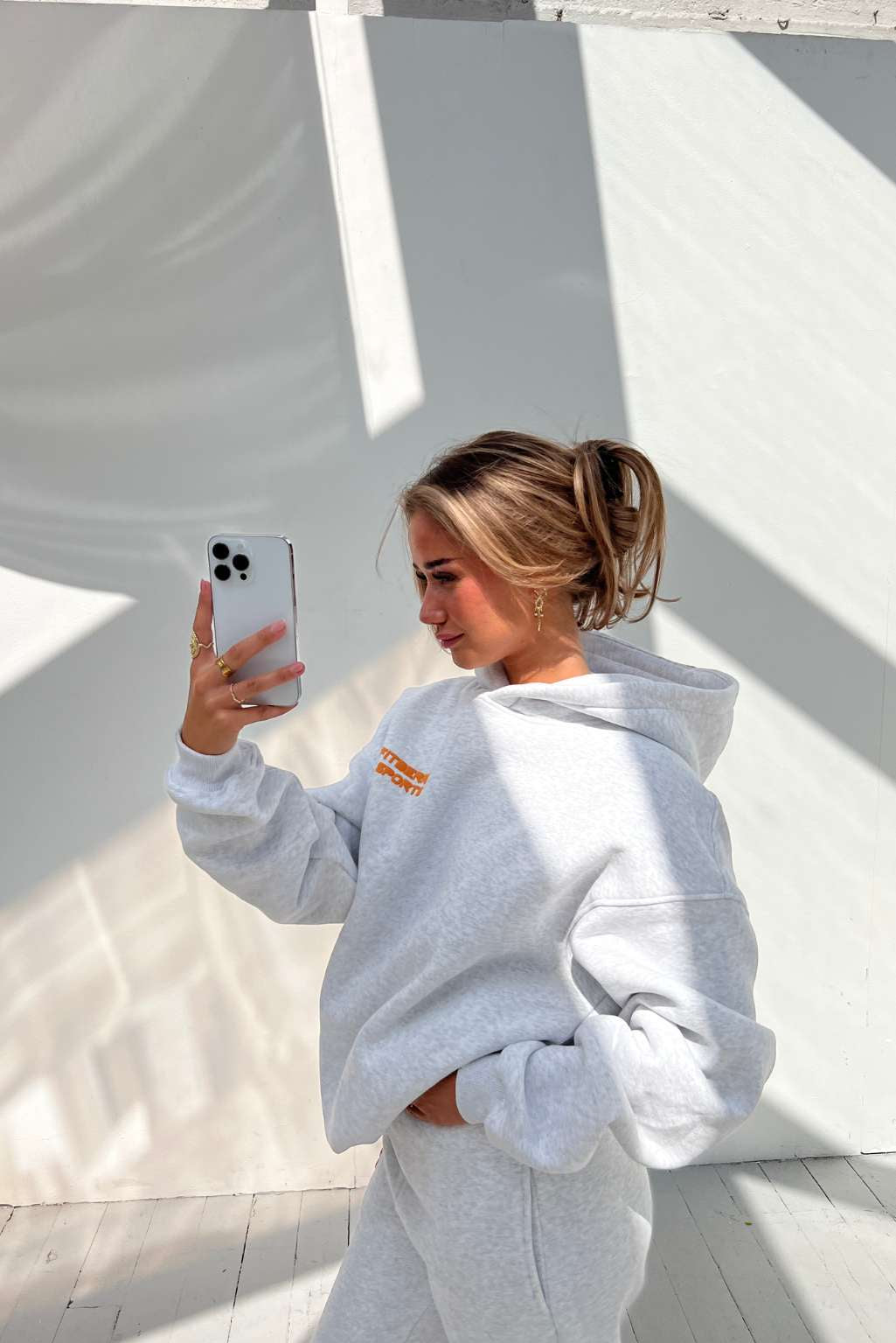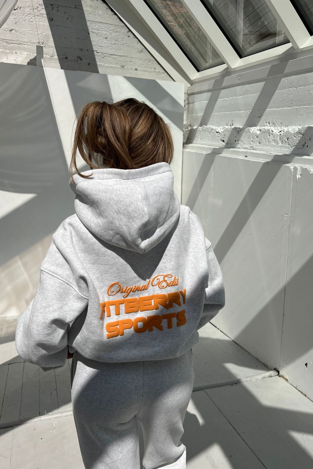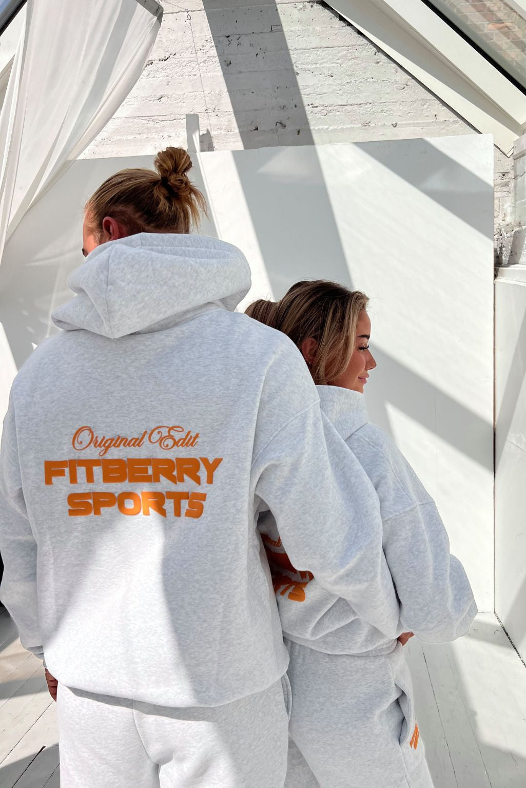 FITBERRY® ORIGINAL EDIT OVERSIZED HOODIE. An oversized hoodie crafted from premium high-quality cotton fabric. The hoodie has a soft fleece interior, dropped shoulders, a cozy hood and ribbed details on the sleeves and waist. Featuring Fitberry Original Edit print to front and back.