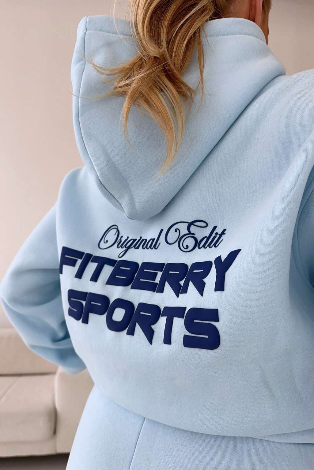 FITBERRY® ORIGINAL EDIT OVERSIZED HOODIE. An oversized hoodie crafted from premium high-quality cotton fabric. The hoodie has a soft fleece interior, dropped shoulders, a cozy hood and ribbed details on the sleeves and waist. Featuring Fitberry Original Edit print to front and back.