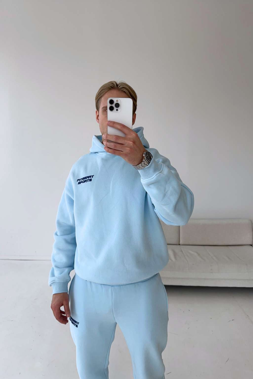 Model 2: Arnold is 180cm and wears a size L in both hoodie and joggers.