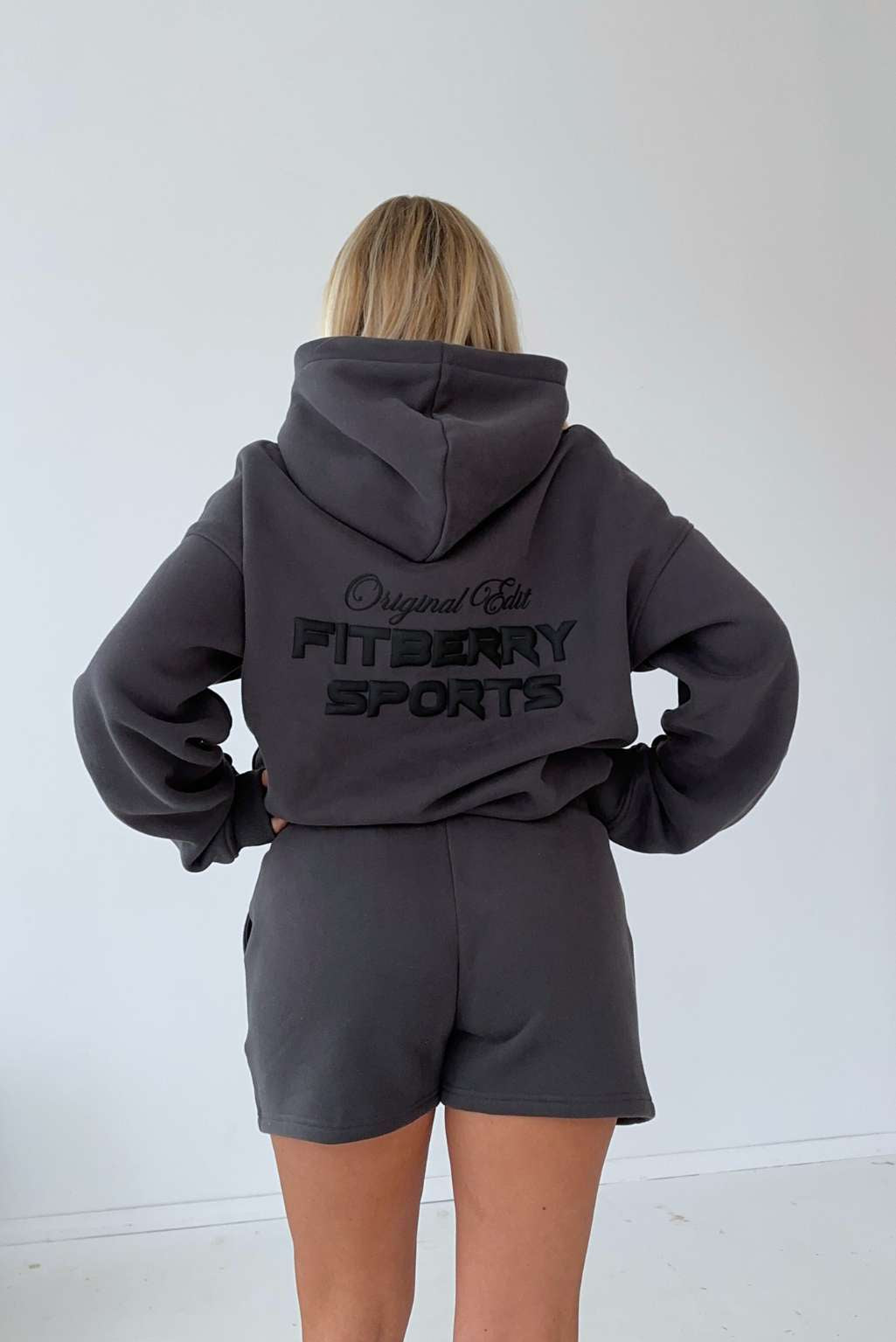 FITBERRY® ORIGINAL EDIT SHORTS. Shorts with a relaxed and slightly oversized fit crafted from a premium high-quality cotton fabric. The shorts feature a soft fleece interior, deep side pockets and a hidden adjustable drawstring. Featuring Fitberry Original Edit print to front.