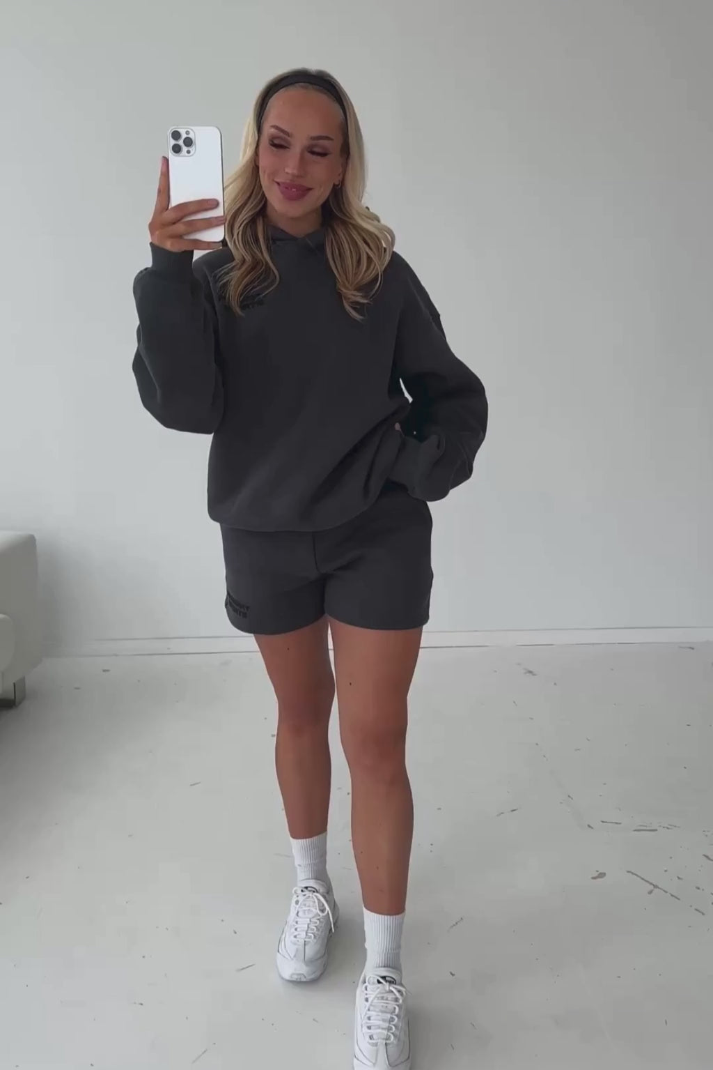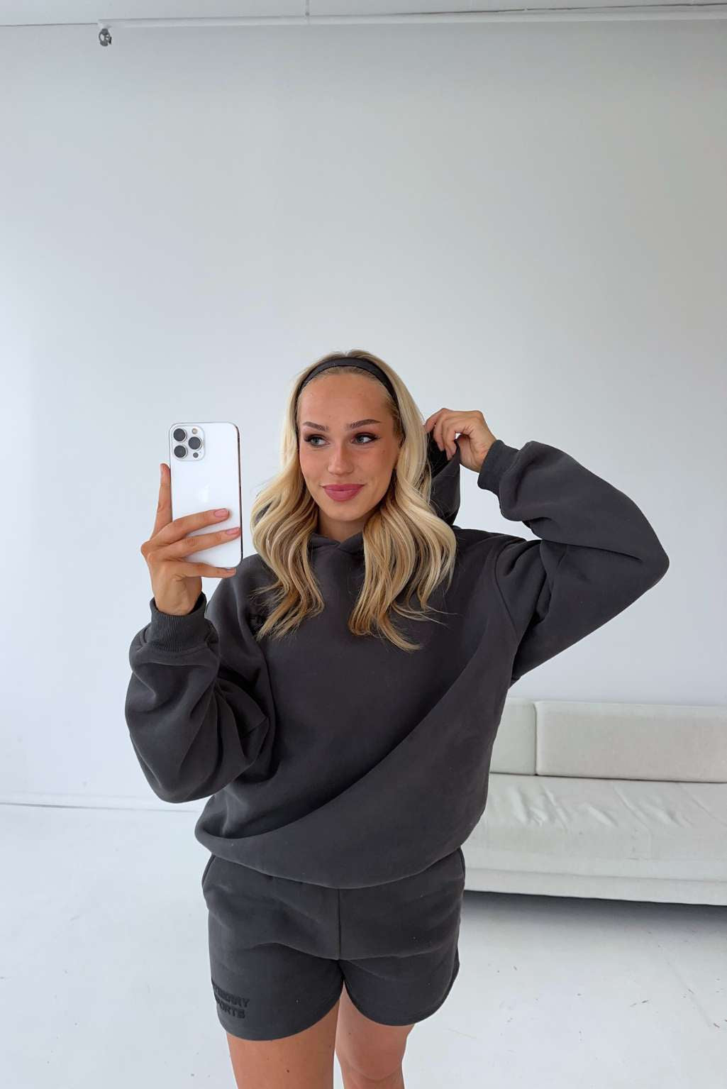 Model: Mia is 170cm and wears a size M in both hoodie and shorts.