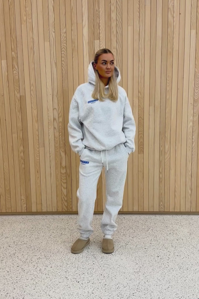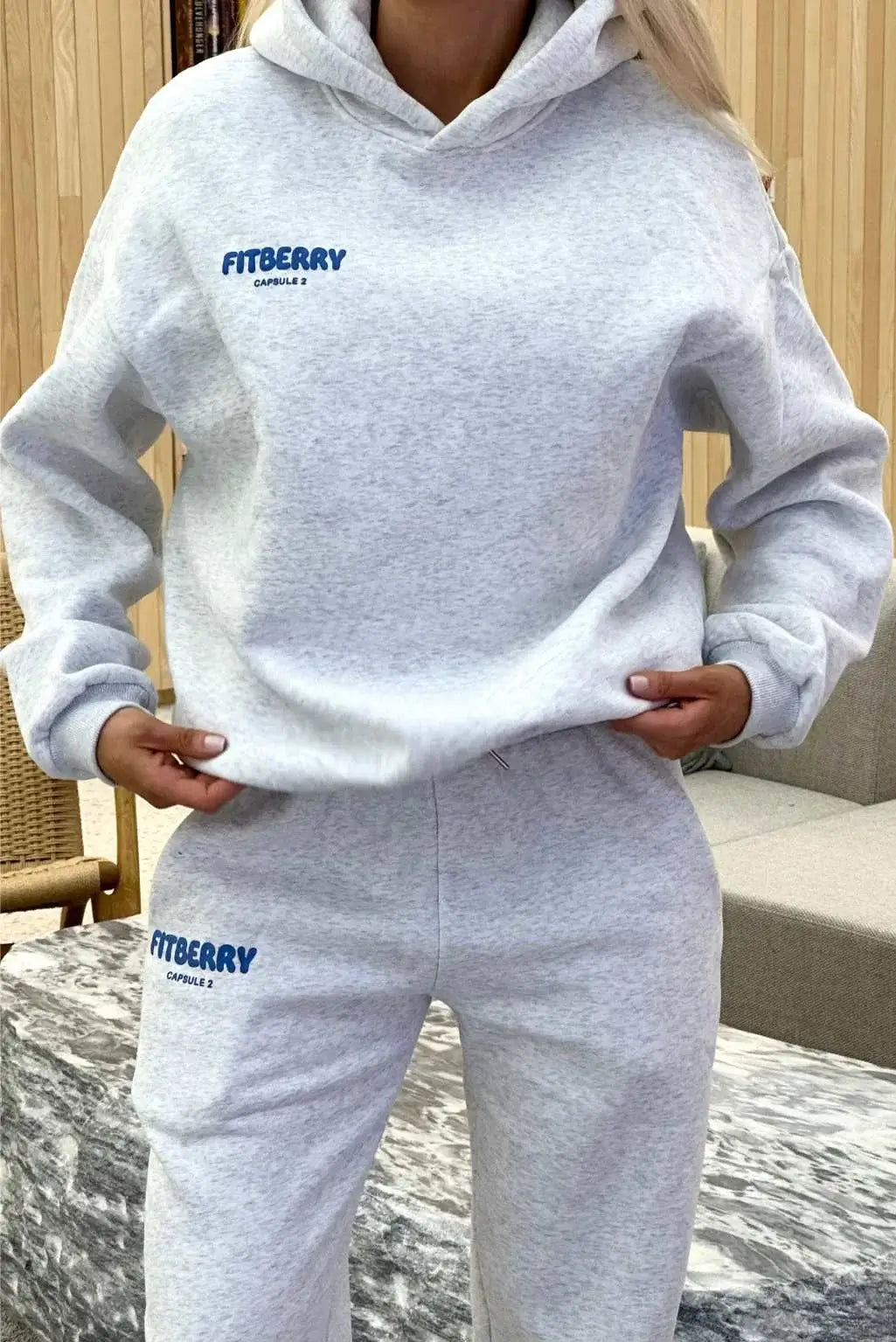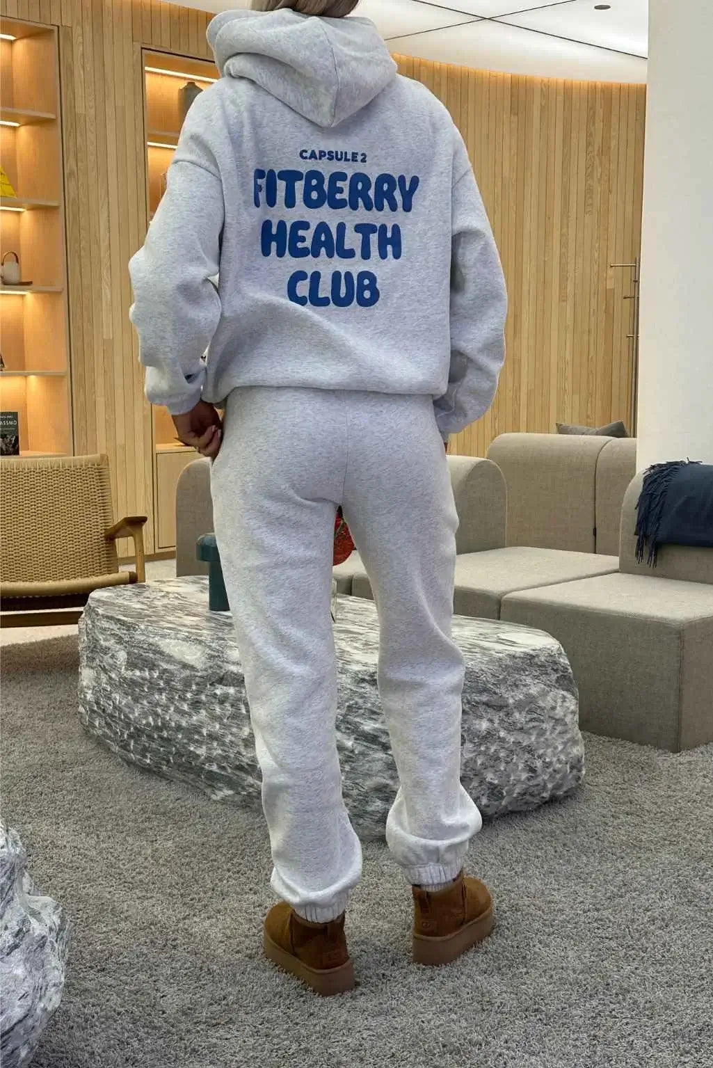 FITBERRY® HEALTH CLUB OVERSIZED HOODIE. An oversized hoodie crafted from a premium high-quality cotton fabric. The hoodie has a soft fleece interior, dropped shoulders, a cozy hood and ribbed details on the sleeves and waist. Featuring our signature Fitberry Health Club Capsule 2 logo to front and back.
