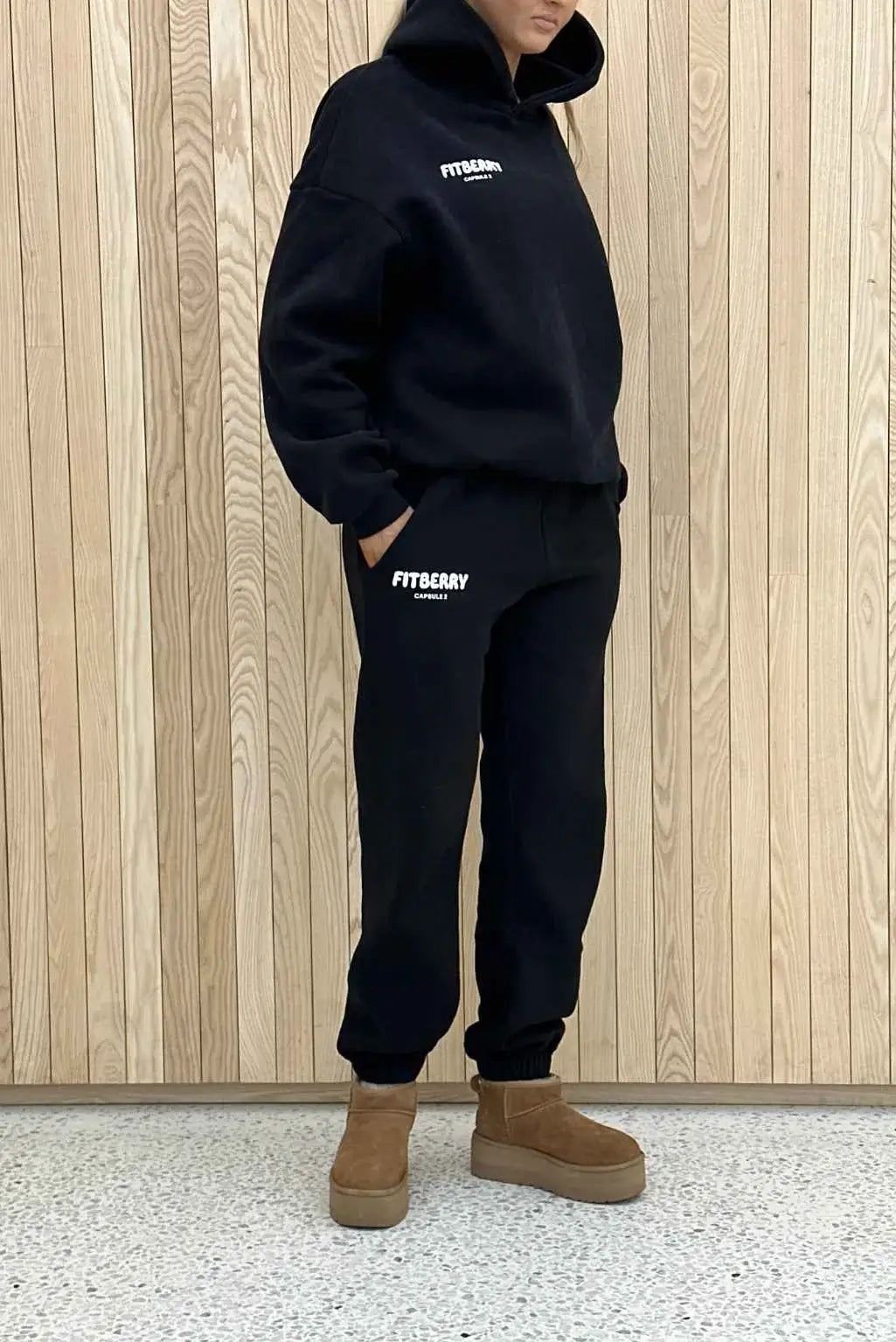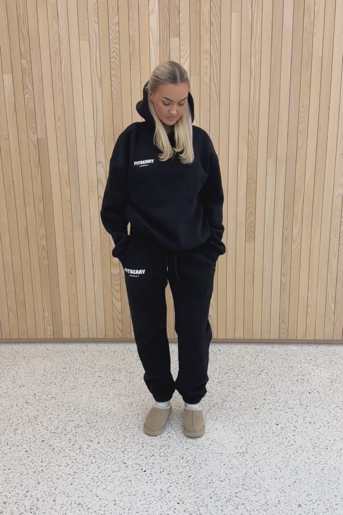 FITBERRY® HEALTH CLUB OVERSIZED JOGGERS. Joggers with an oversized fit crafted from a premium high-quality cotton fabric. The joggers have soft fleece interior, deep pockets, an adjustable drawstring waist and elastics at waist and leg openings. Featuring our signature Fitberry Health Club Capsule 2 logo at the front.