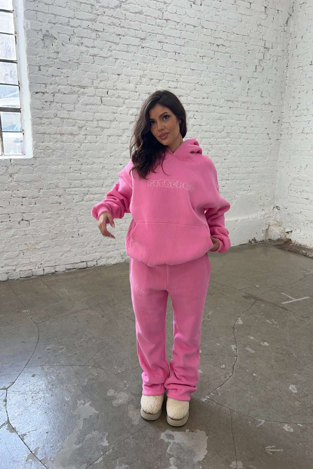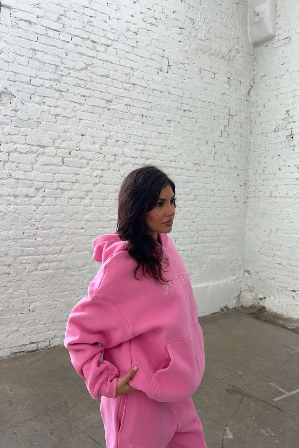 FITBERRY® PLUSHIE OVERSIZED HOODIE. A hoodie with an extra oversized fit for that baggy look. Crafted from a premium high-quality cotton fabric. The hoodie has a soft fleece interior, front pocket, dropped shoulders, a cozy hood and ribbed details on the sleeves and waist. Featuring Fitberry logo embroidery to front.