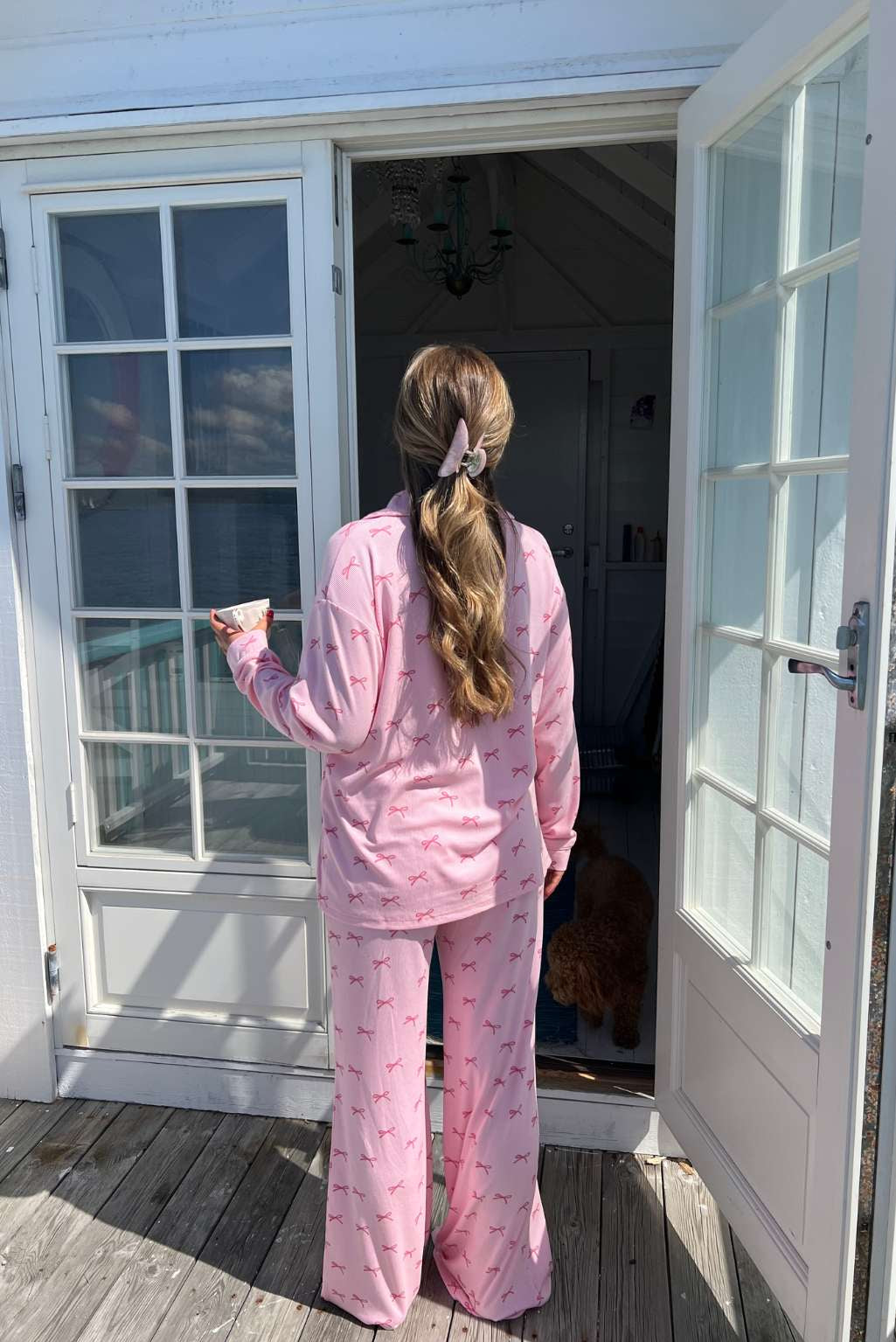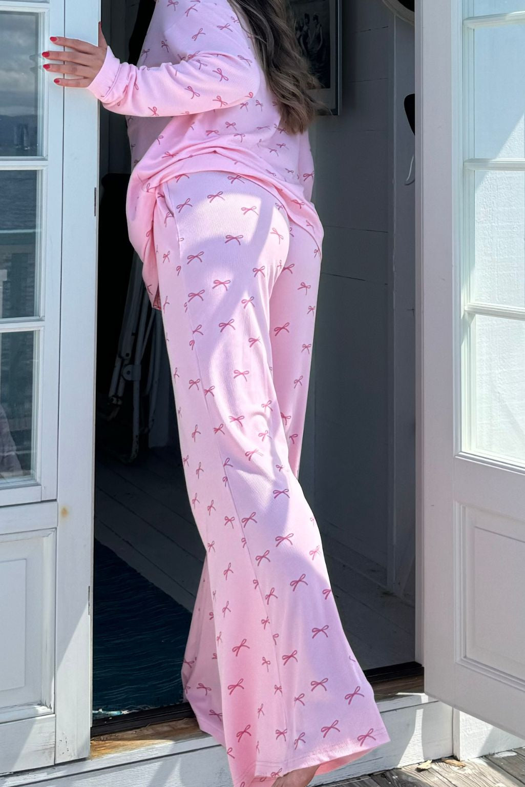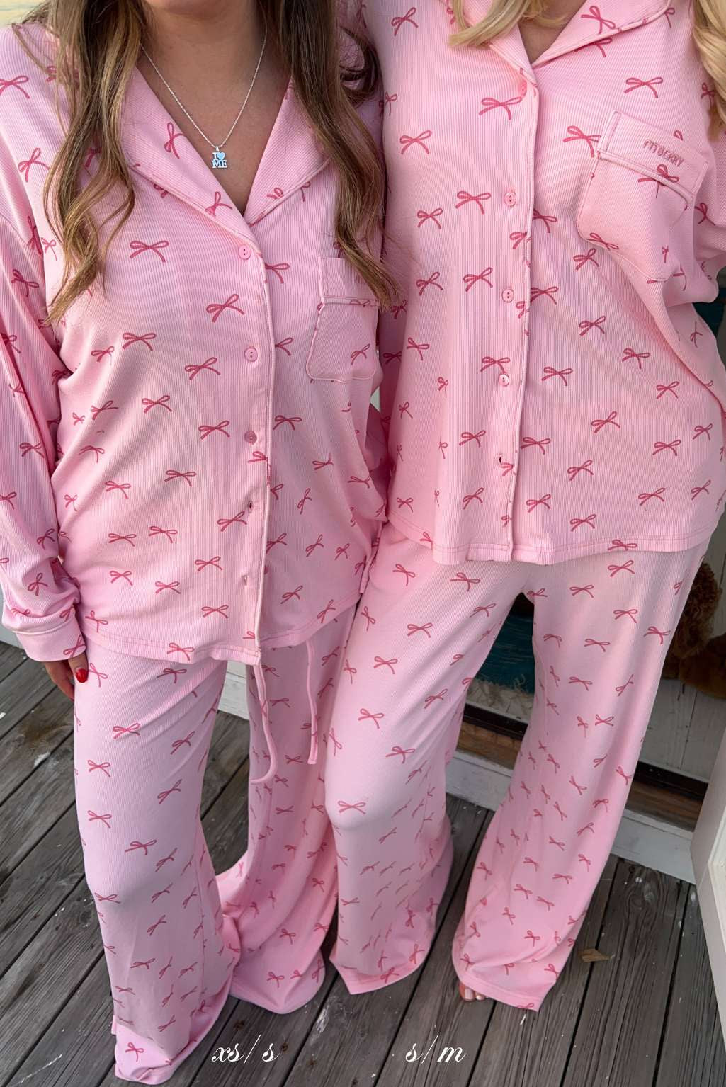 FITBERRY® RIBBON BLISS PYJAMAS PANTS. The softest pyjamas pants featuring ribbon print, wide leg, hidden elastic drawstring waist and deep pockets. Crafted from a ultra soft and stretchy modal rib fabric.
