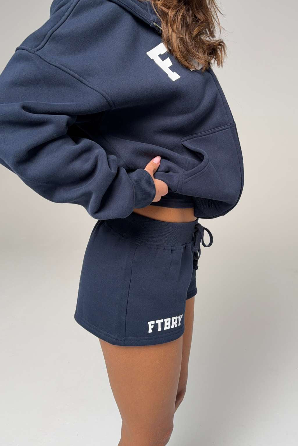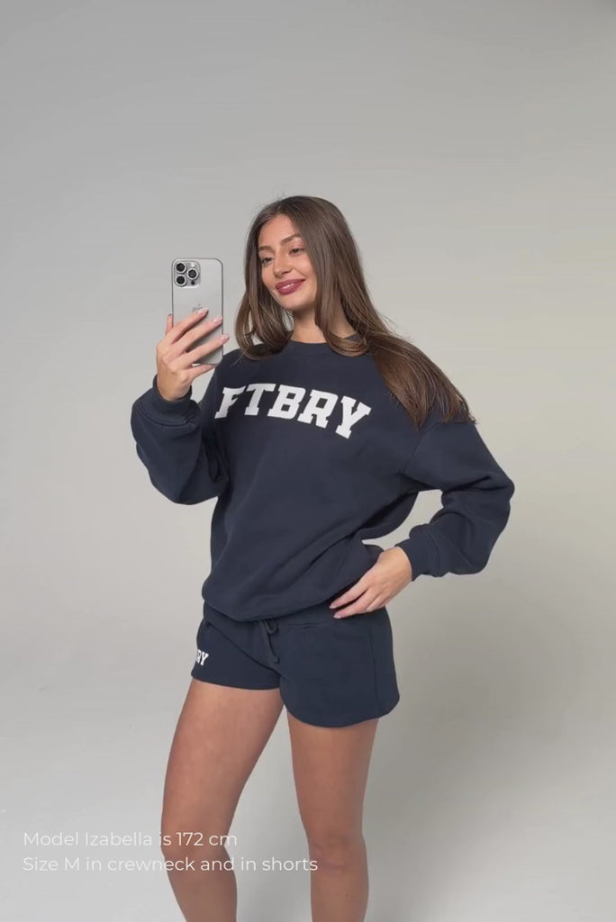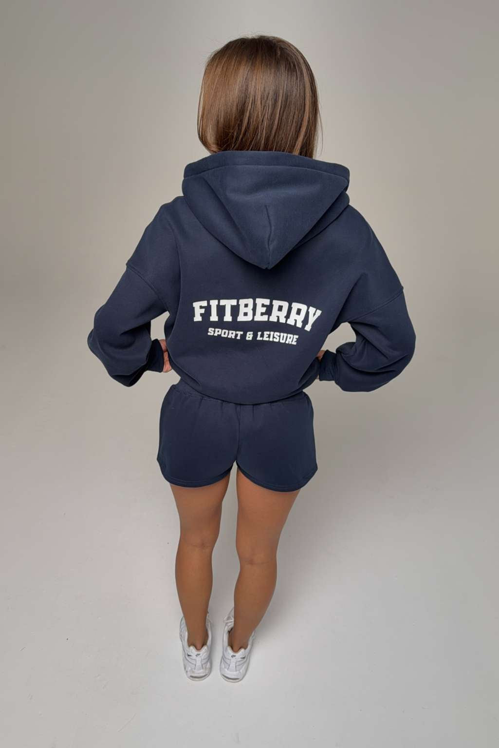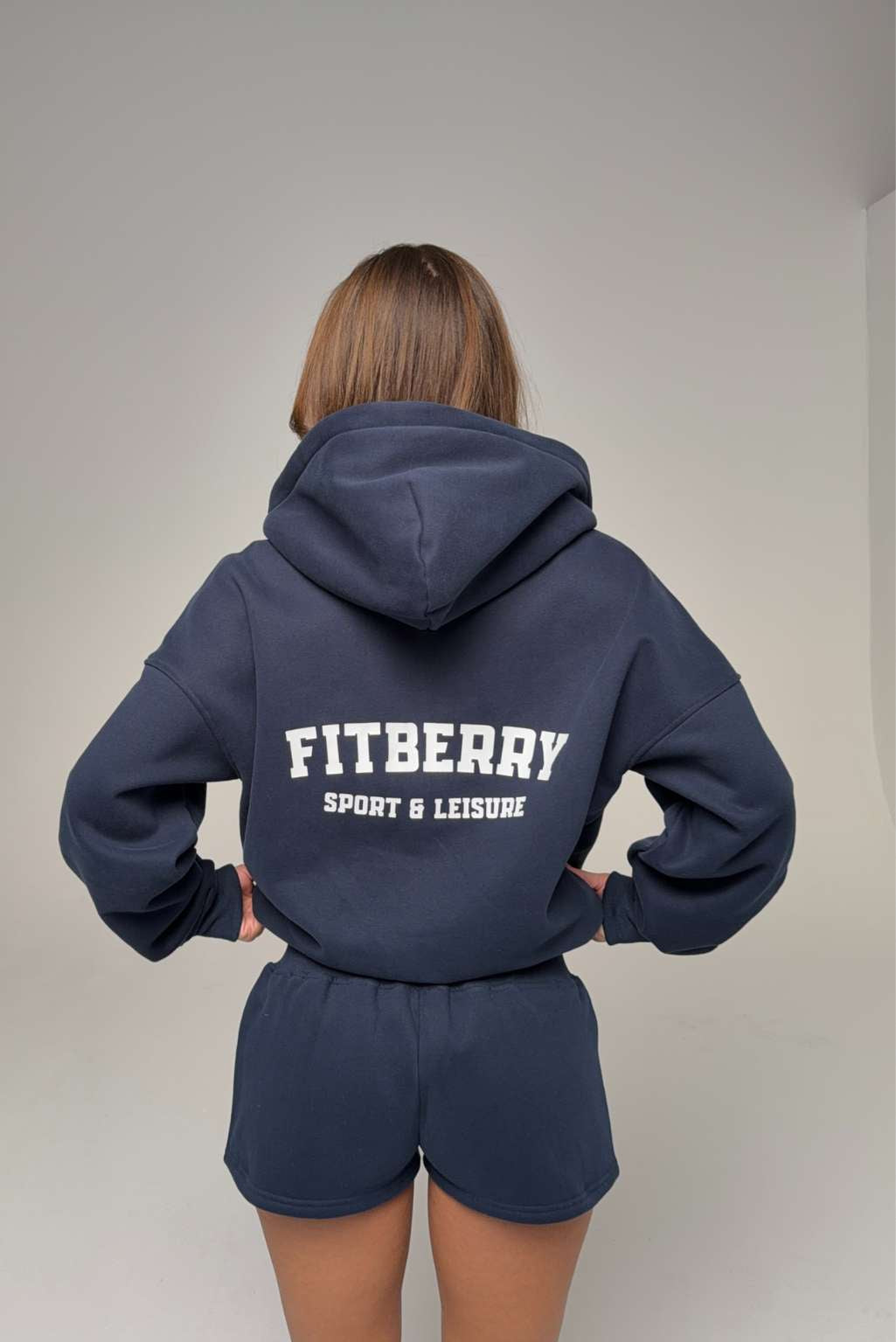 FITBERRY® SPORT & LEISURE SHORTS. Low-waist shorts with a flattering fit. Crafted from a premium high-quality cotton fabric. The shorts feature a soft fleece interior and an adjustable drawstring waist. Featuring FITBERRY® Sport & Leisure print to front.