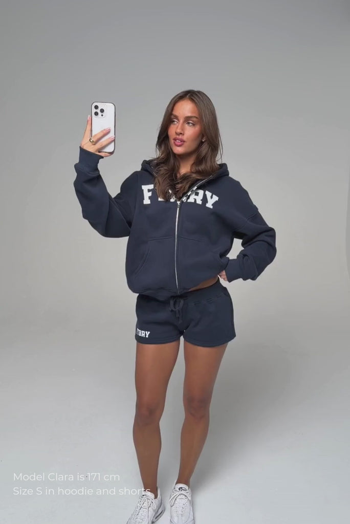 Model 2: Clara is 171cm and wears a size S in hoodie and size S in joggers / shorts.