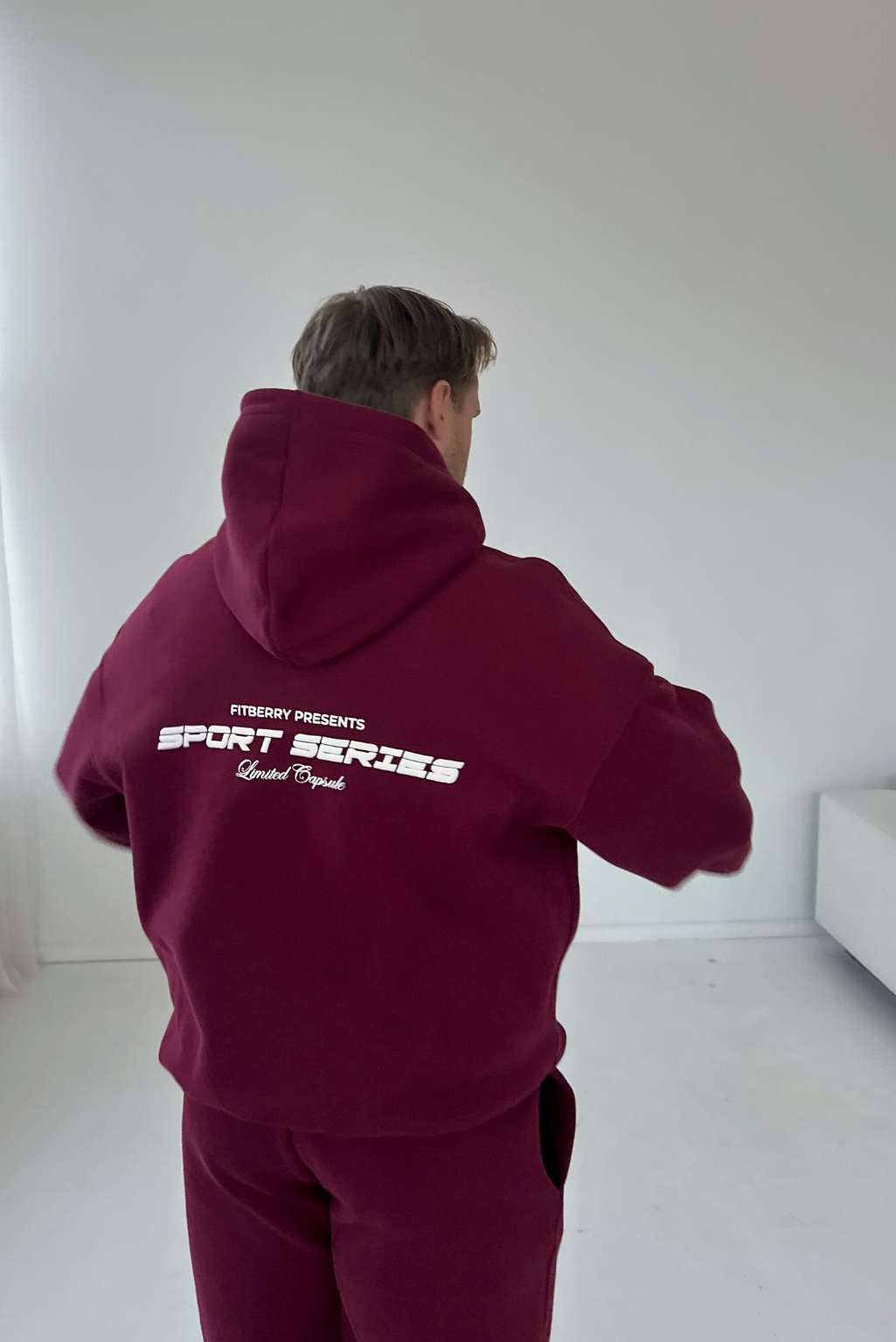 FITBERRY® SPORT SERIES OVERSIZED HOODIE. An oversized hoodie crafted from a premium high-quality cotton fabric. The hoodie has a soft fleece interior, dropped shoulders, a cozy hood, front pocket and ribbed details on the sleeves and waist. Featuring our Fitberry Sport Series print to front and back.