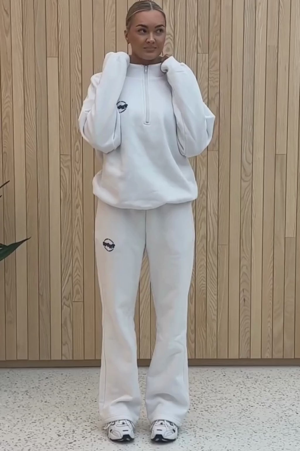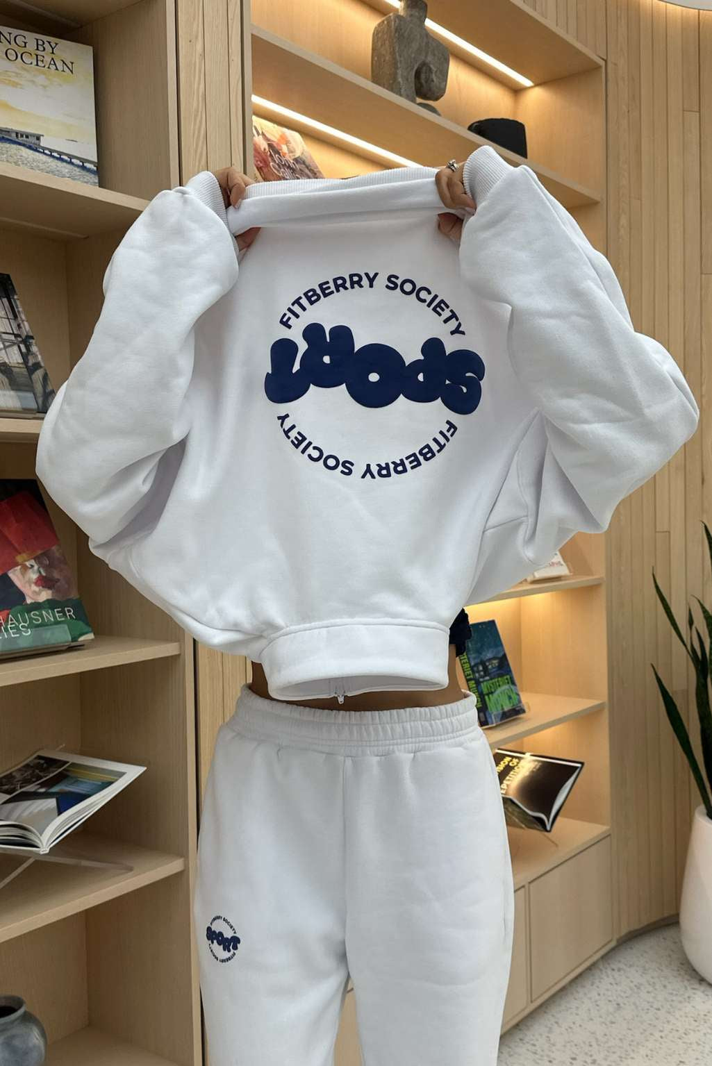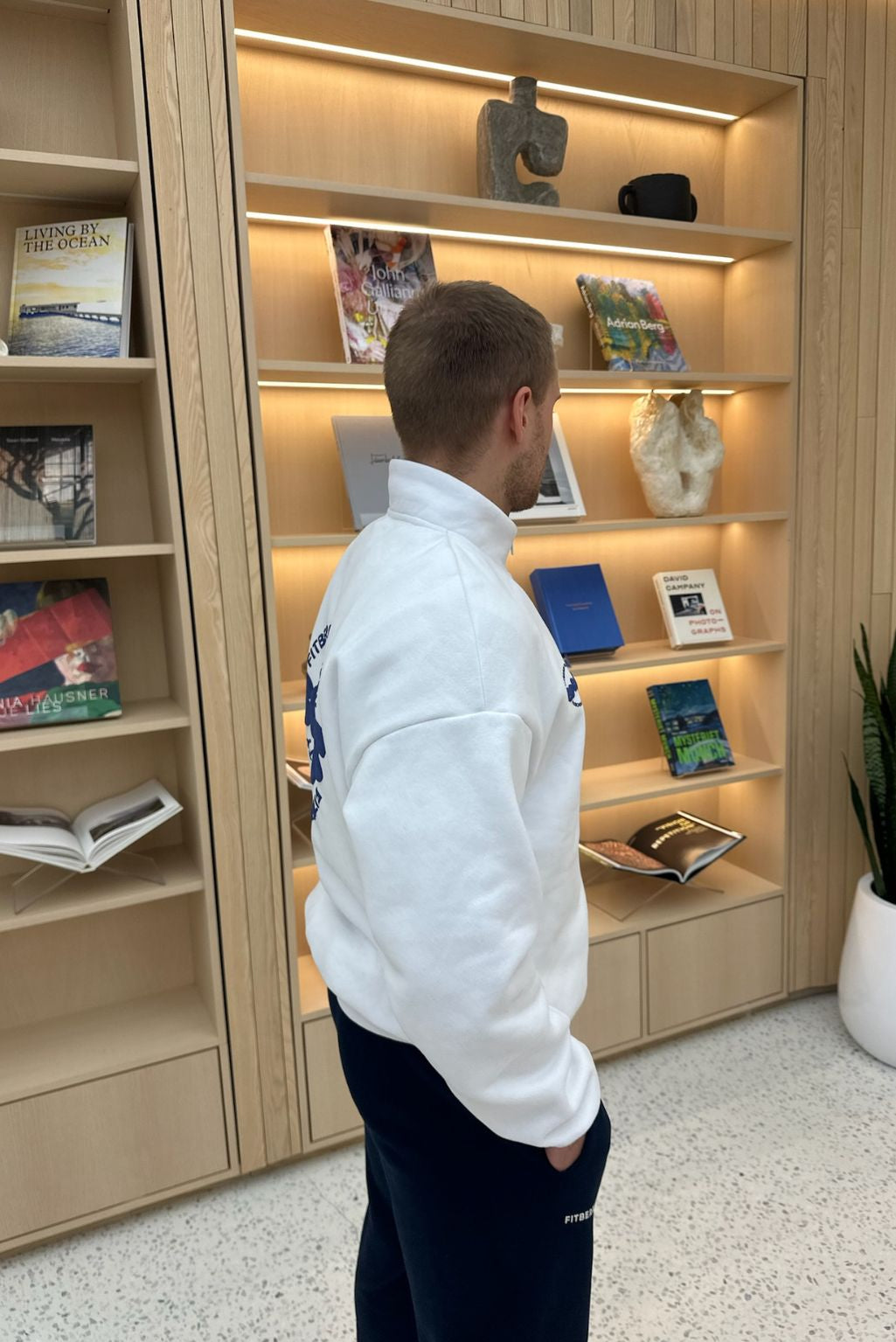 FITBERRY® SPORT SOCIETY OVERSIZED HALF ZIP. A sweatshirt with half zip in front and the perfect oversized fit. Crafted from a premium high-quality cotton fabric. The half zip has soft fleece interior, dropped shoulders and ribbed details on the sleeves and waist. Featuring our signature Sport Society logo to front and back.
