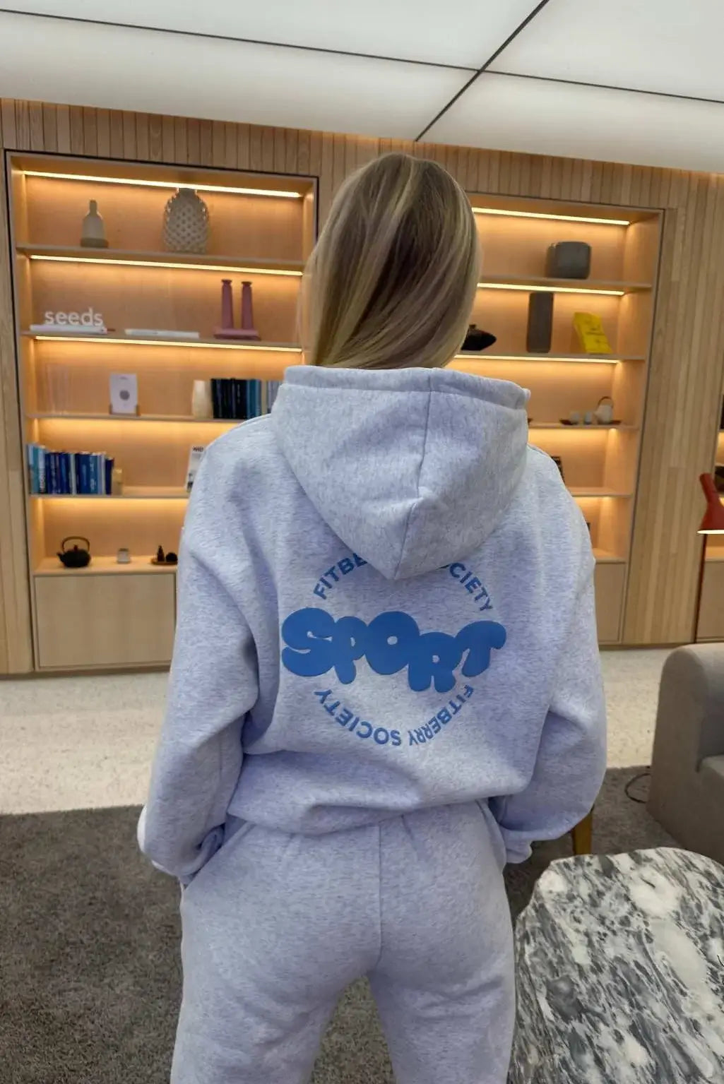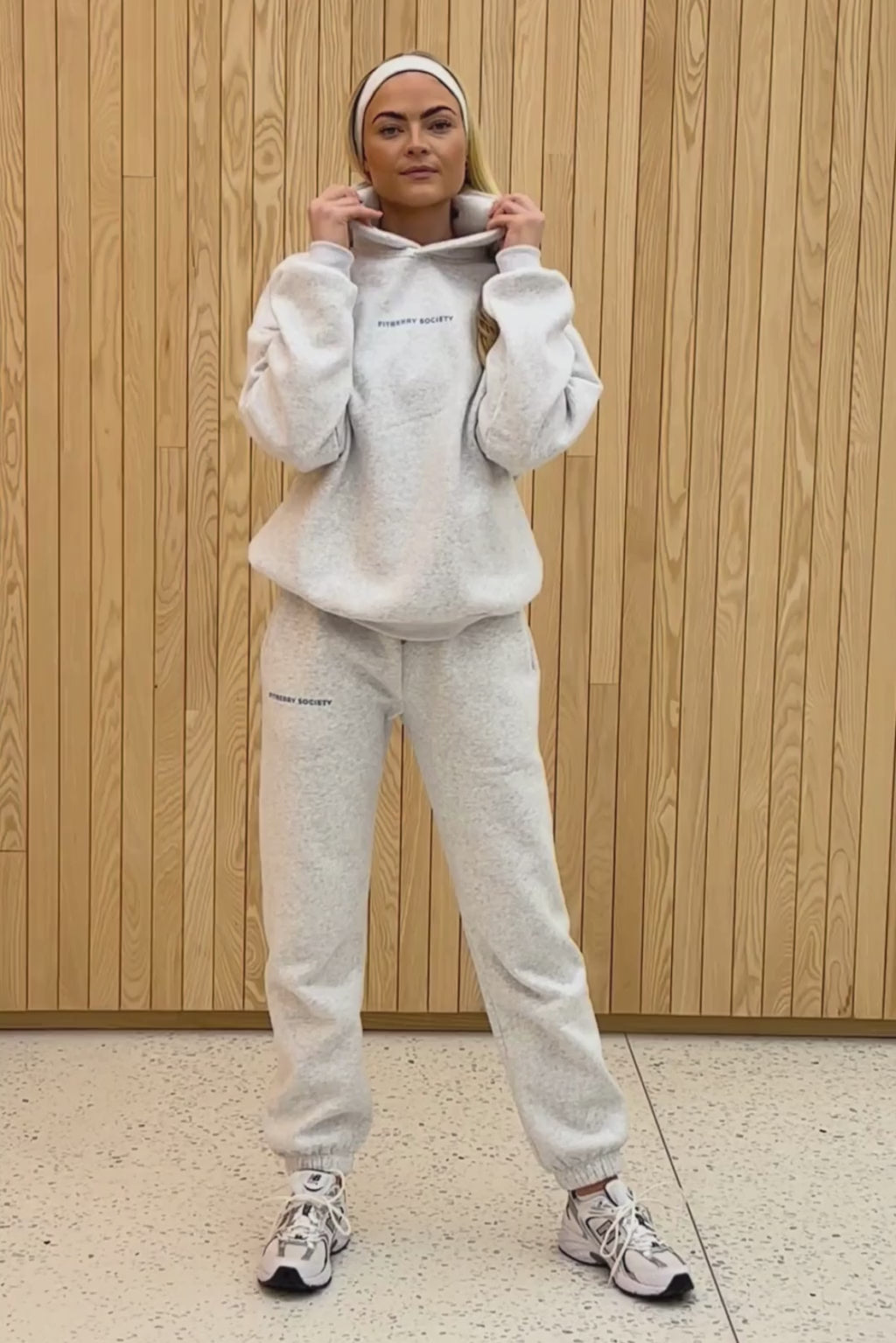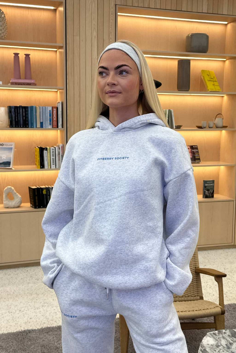 FITBERRY® SPORT SOCIETY OVERSIZED HOODIE. An oversized hoodie crafted from a premium high-quality cotton fabric. The hoodie has a soft fleece interior, dropped shoulders, a cozy hood and ribbed details on the sleeves and waist. Featuring our signature Sport Society print to front and back.