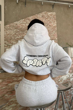 Model 1: Mia is 170cm and wears a size M in both hoodie and joggers.