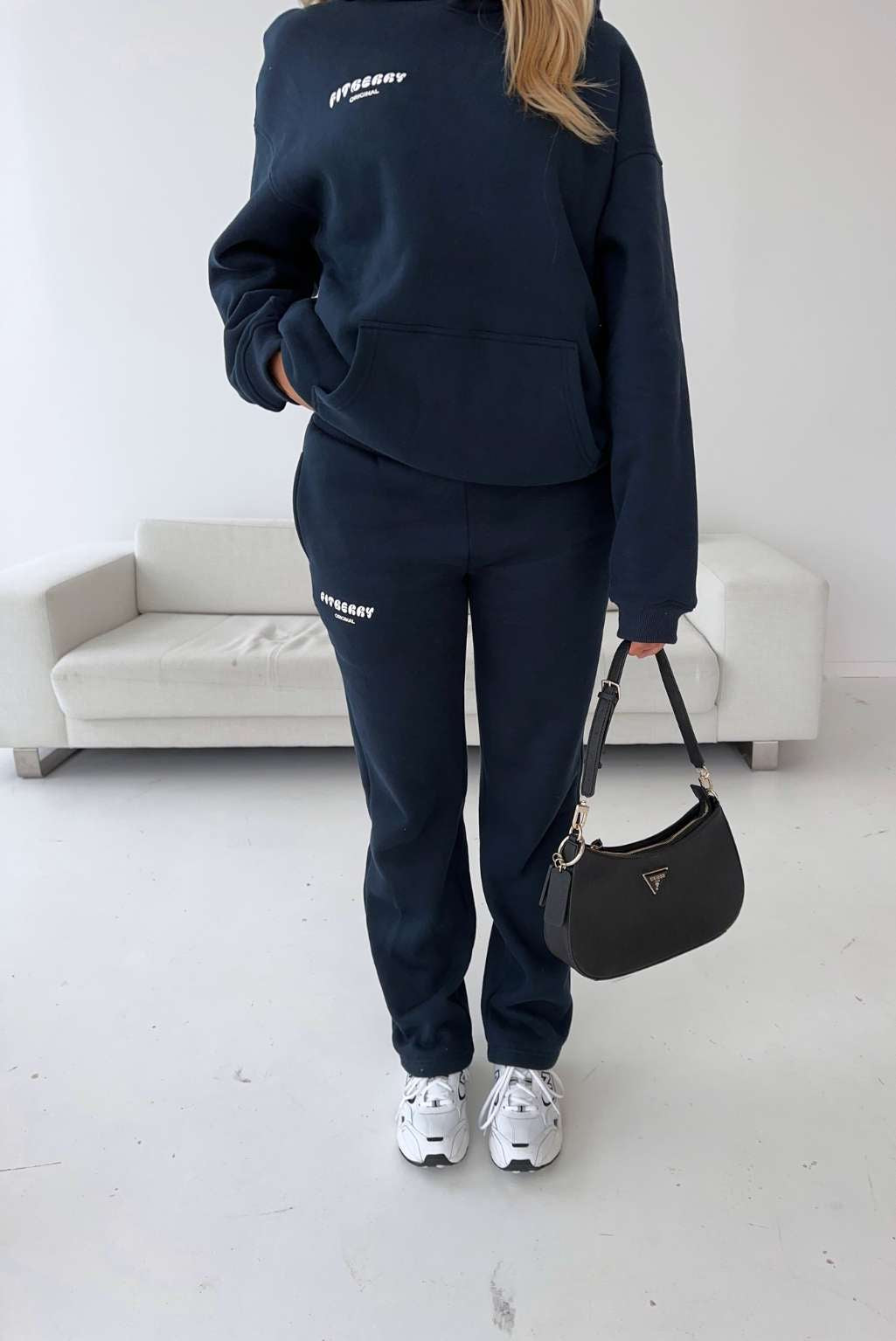 Model 2: Malin is 175cm and wears a size M in both hoodie and joggers.