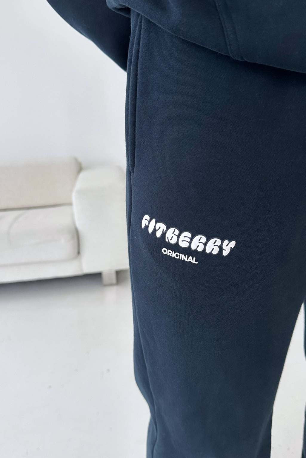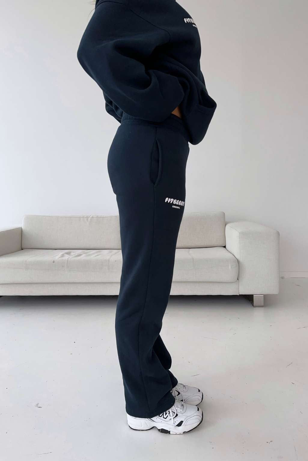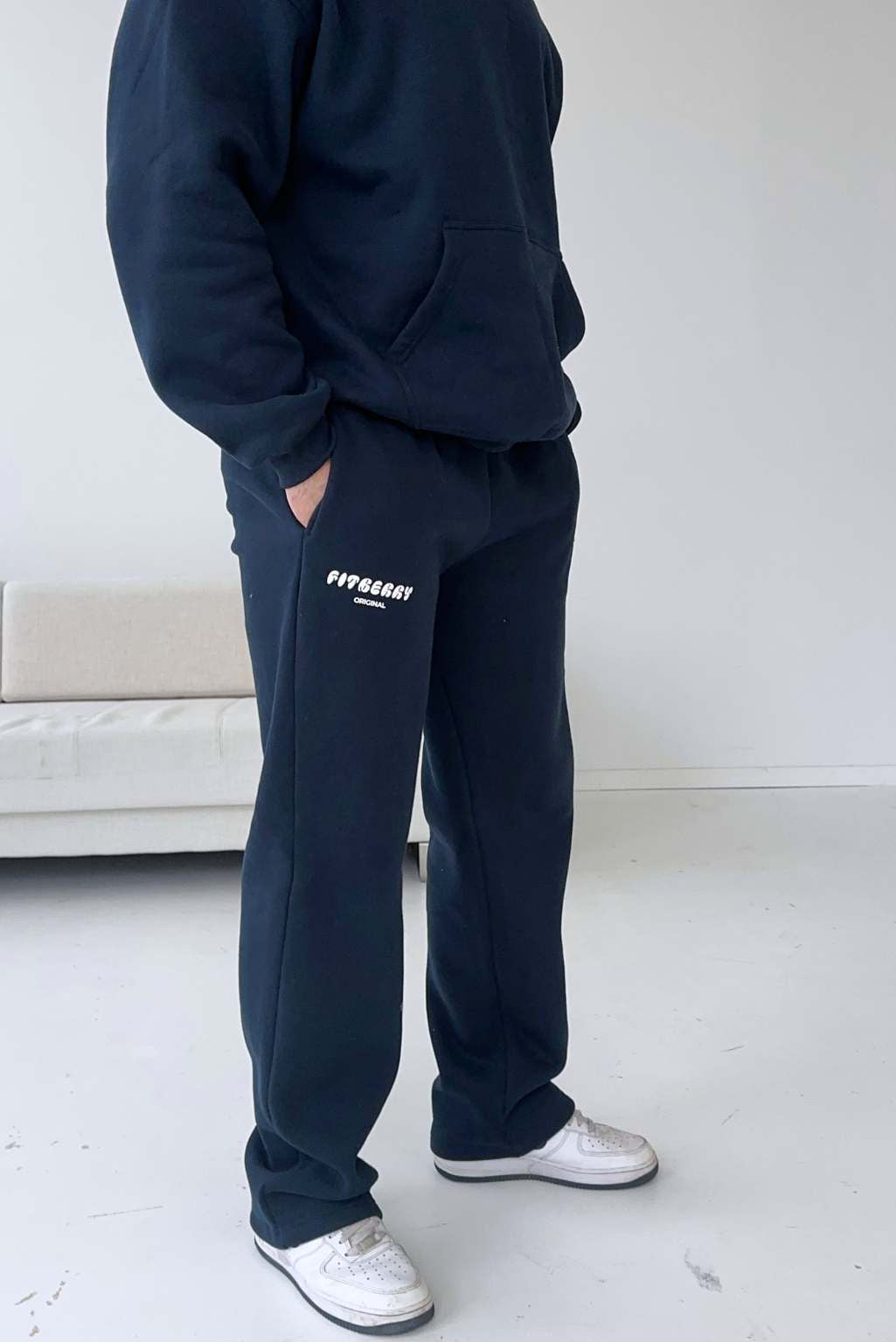 FITBERRY® SPORTY STRAIGHT LEG JOGGERS. Mid-waist joggers with straight leg and the perfect fit. Crafted from a premium high-quality cotton fabric. The straight joggers have soft fleece interior, deep pockets and a hidden adjustable drawstring waist. Featuring our Fitberry Sporty print to front.