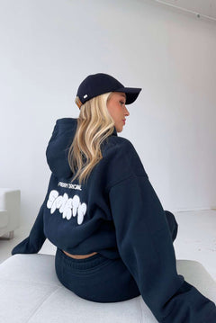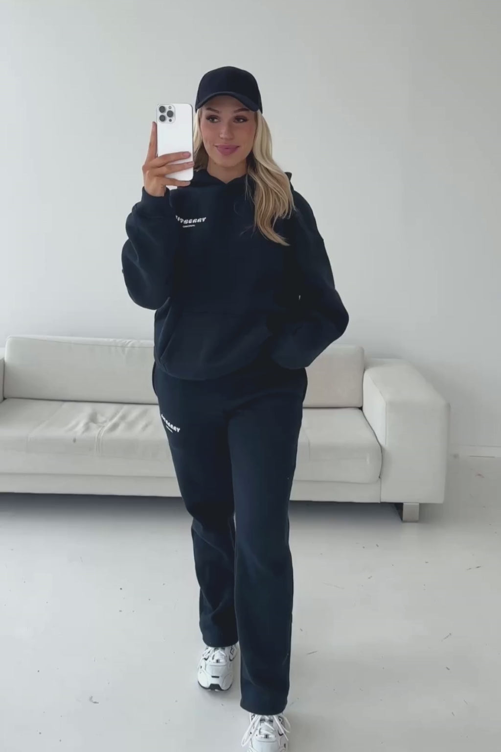 Model 1: Mia is 170cm and wears a size M in both hoodie and joggers.