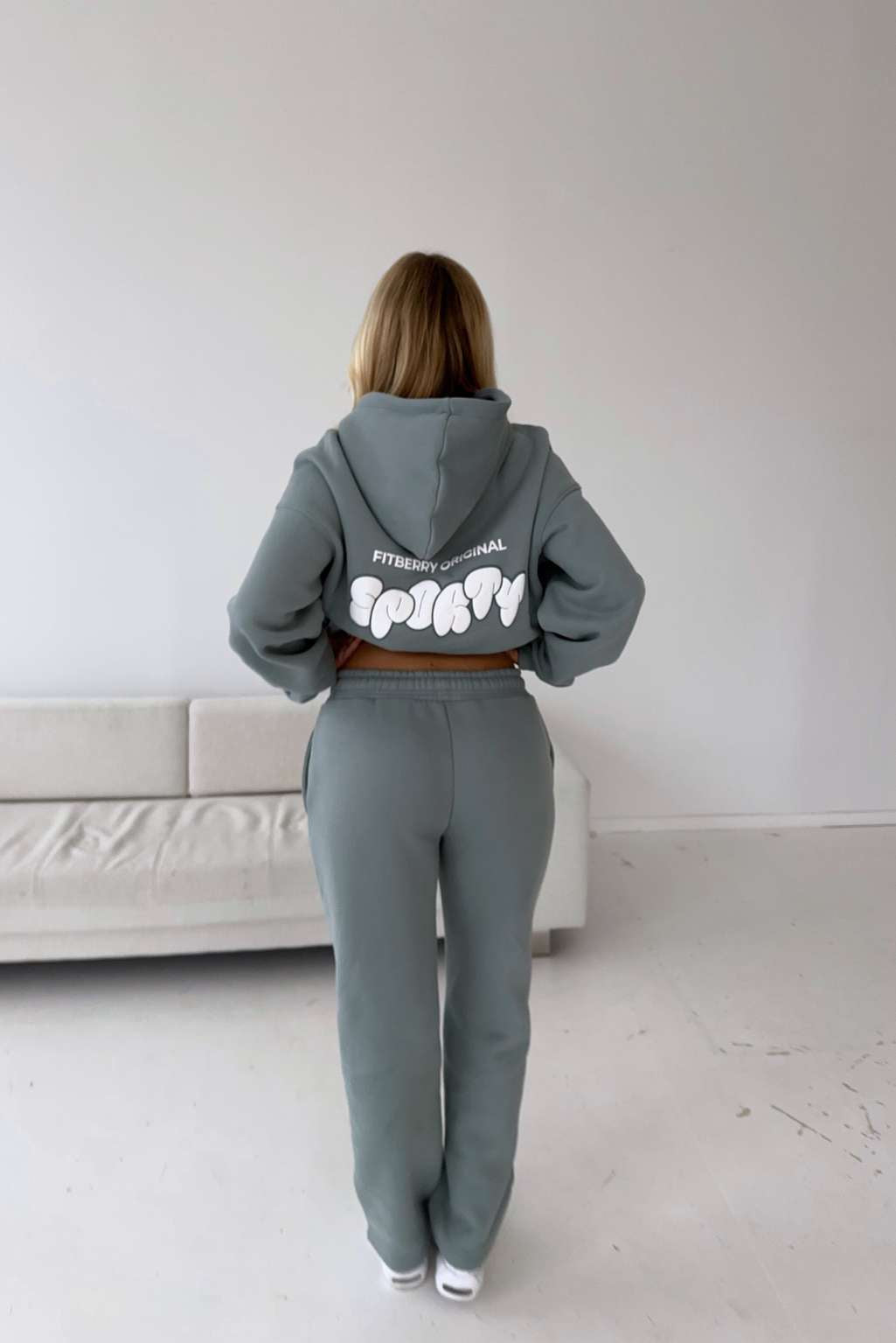 FITBERRY® SPORTY OVERSIZED HOODIE. An oversized hoodie crafted from premium high-quality cotton fabric. The hoodie has a soft fleece interior, dropped shoulders, a cozy hood, front pocket and ribbed details on the sleeves and waist. Featuring Fitberry Sporty print to front and back.