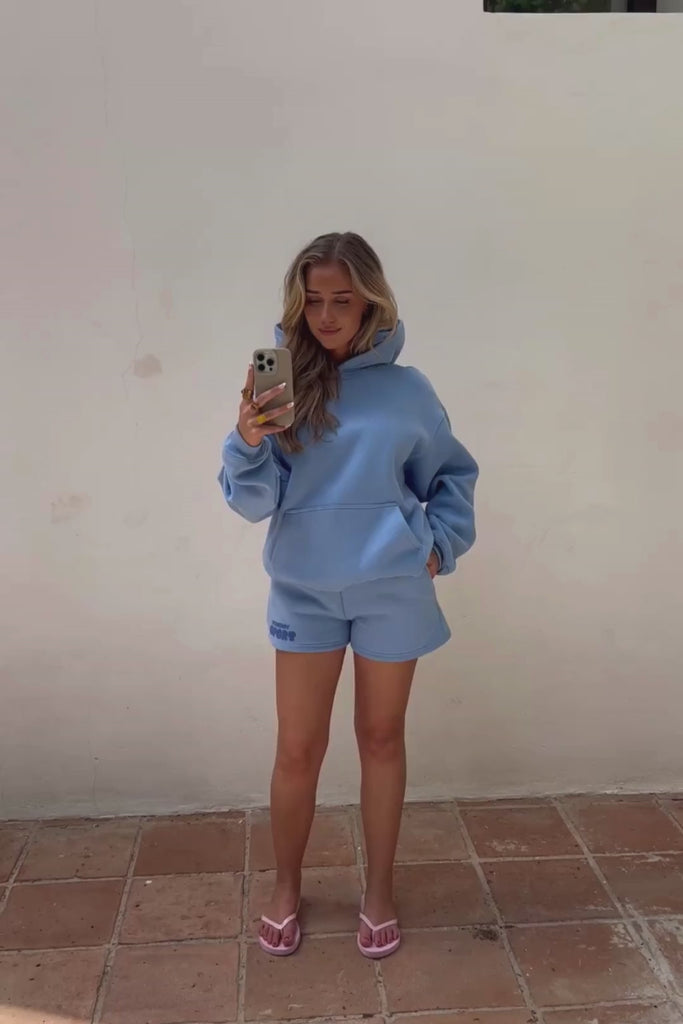 Model 2: Hanna is 160cm and wears a size S in hoodie and size XS in joggers / shorts.