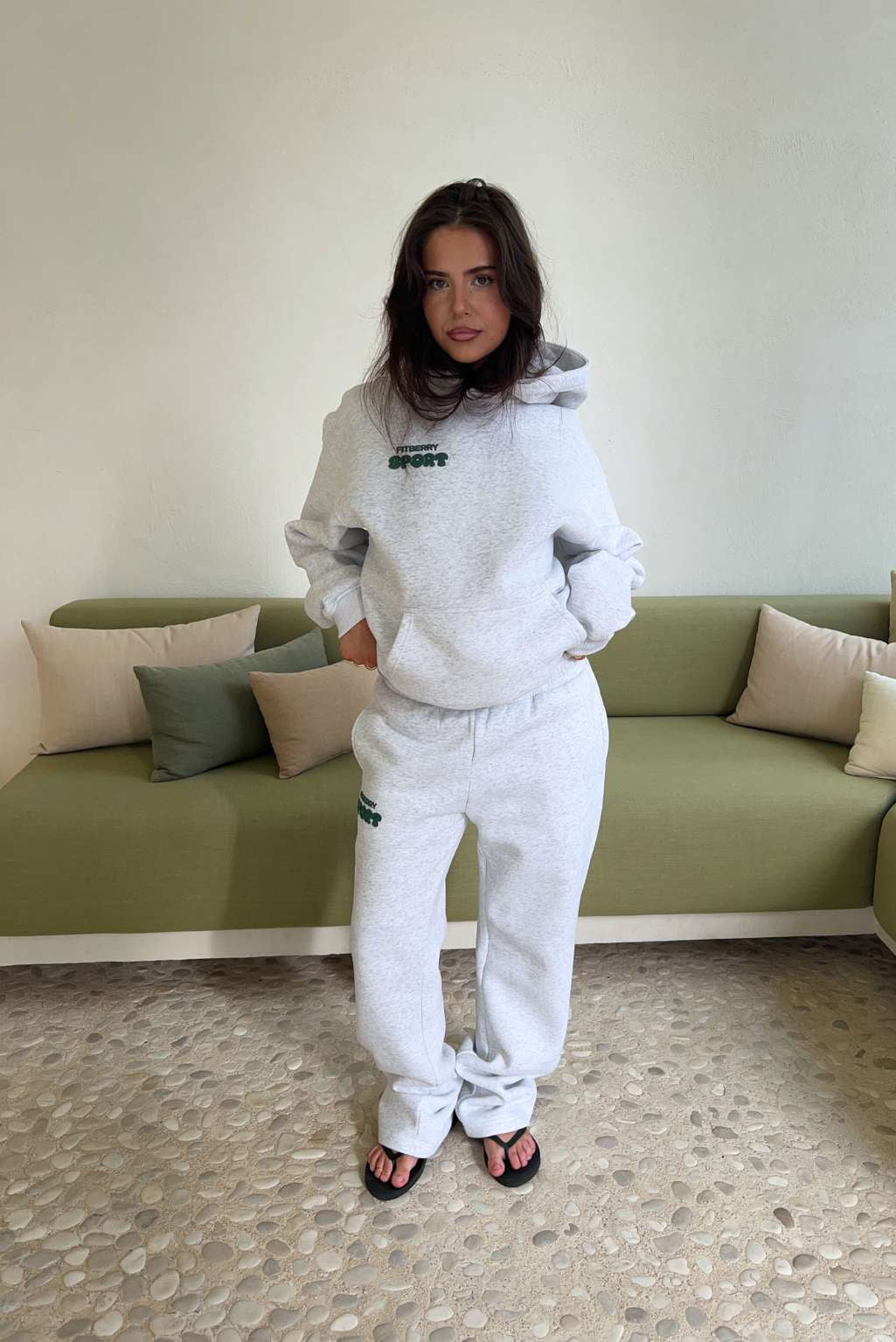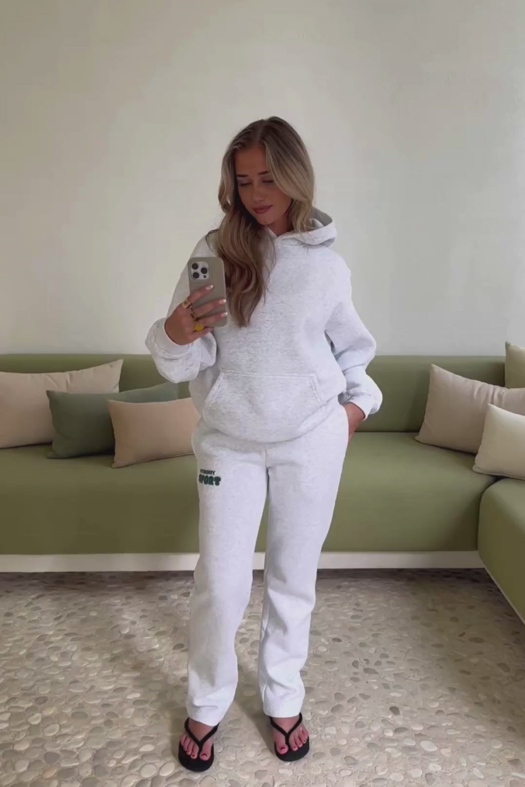 Model 1: Anne is 160cm and wears a size S in hoodie and size M in joggers / shorts.
