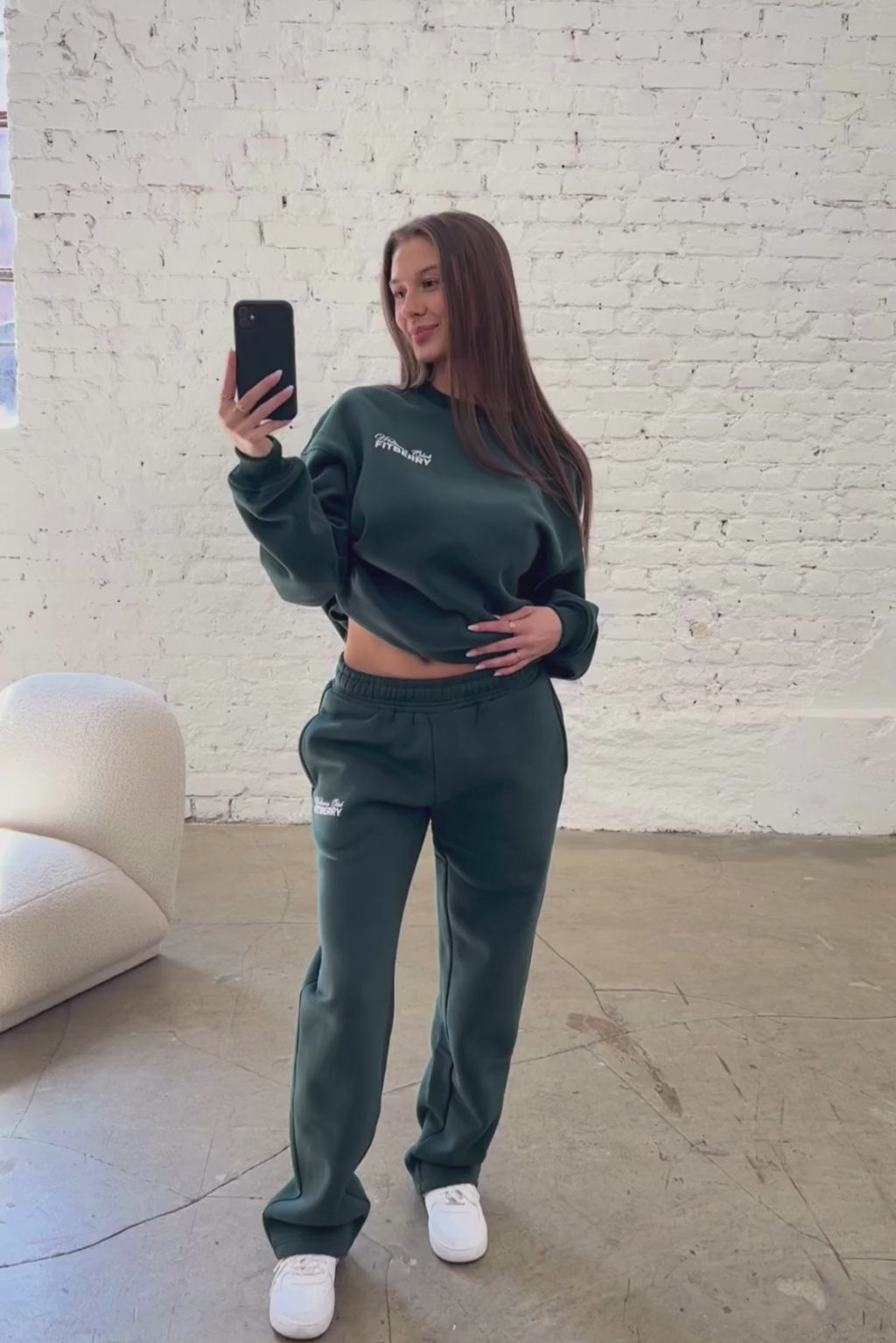FITBERRY® WELLNESS CLUB OVERSIZED CREWNECK. An oversized crewneck crafted from premium high-quality cotton fabric. The crewneck has a soft fleece interior, round neck, dropped shoulders and ribbed details at the neck, cuffs and waist. Featuring FITBERRY® WELLNESS CLUB print to front and back.