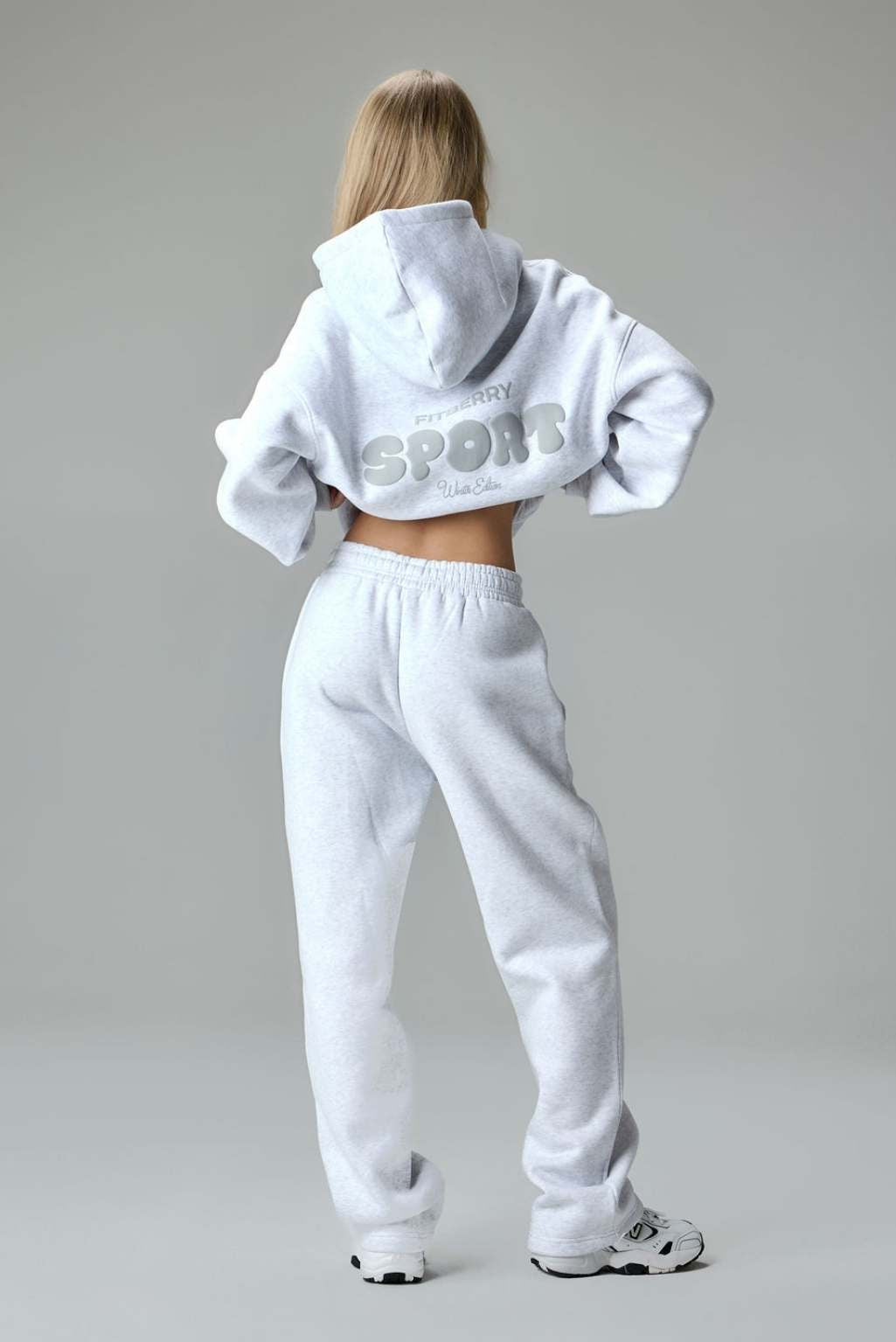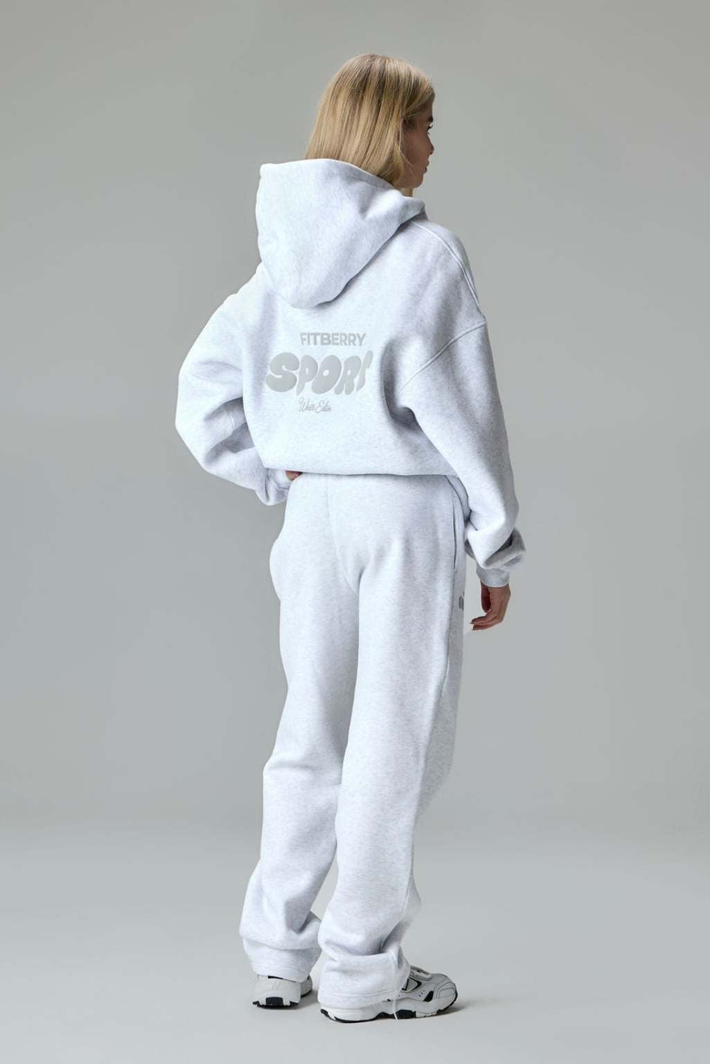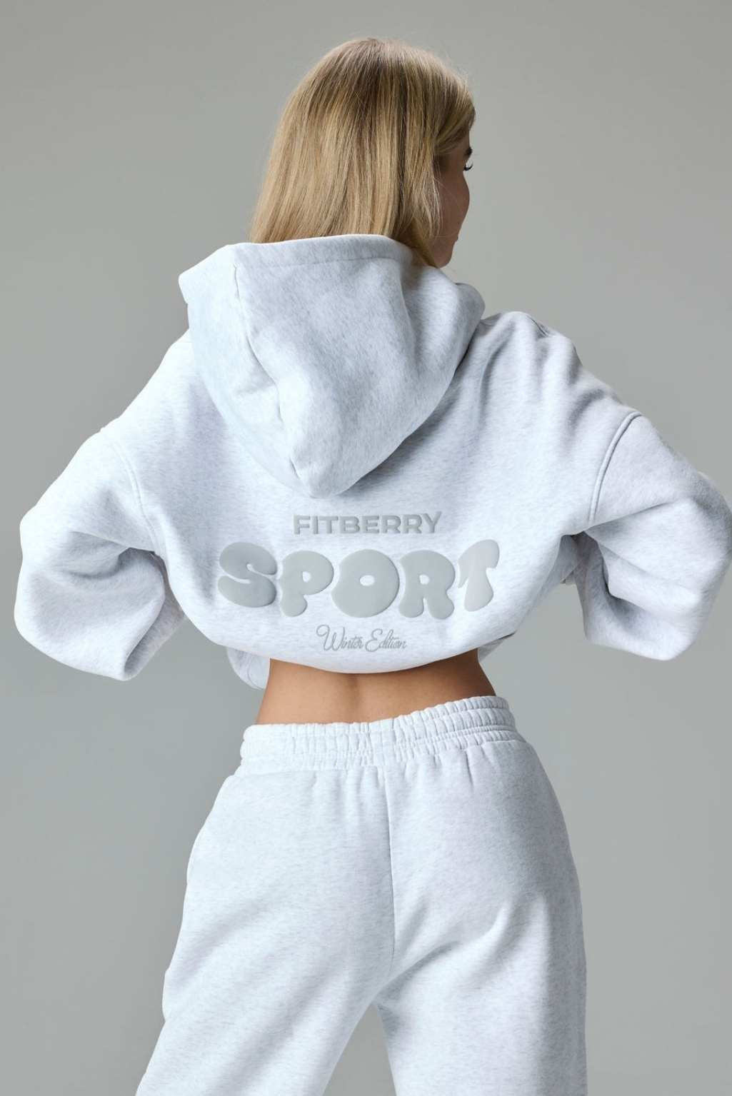 FITBERRY® WINTER EDITION OVERSIZED HOODIE. An oversized hoodie crafted from premium high-quality cotton fabric. The hoodie has a soft fleece interior, dropped shoulders, a cozy hood, front pocket and ribbed details on the sleeves and waist. Featuring our signature Fitberry Winter Edition print to front and back.